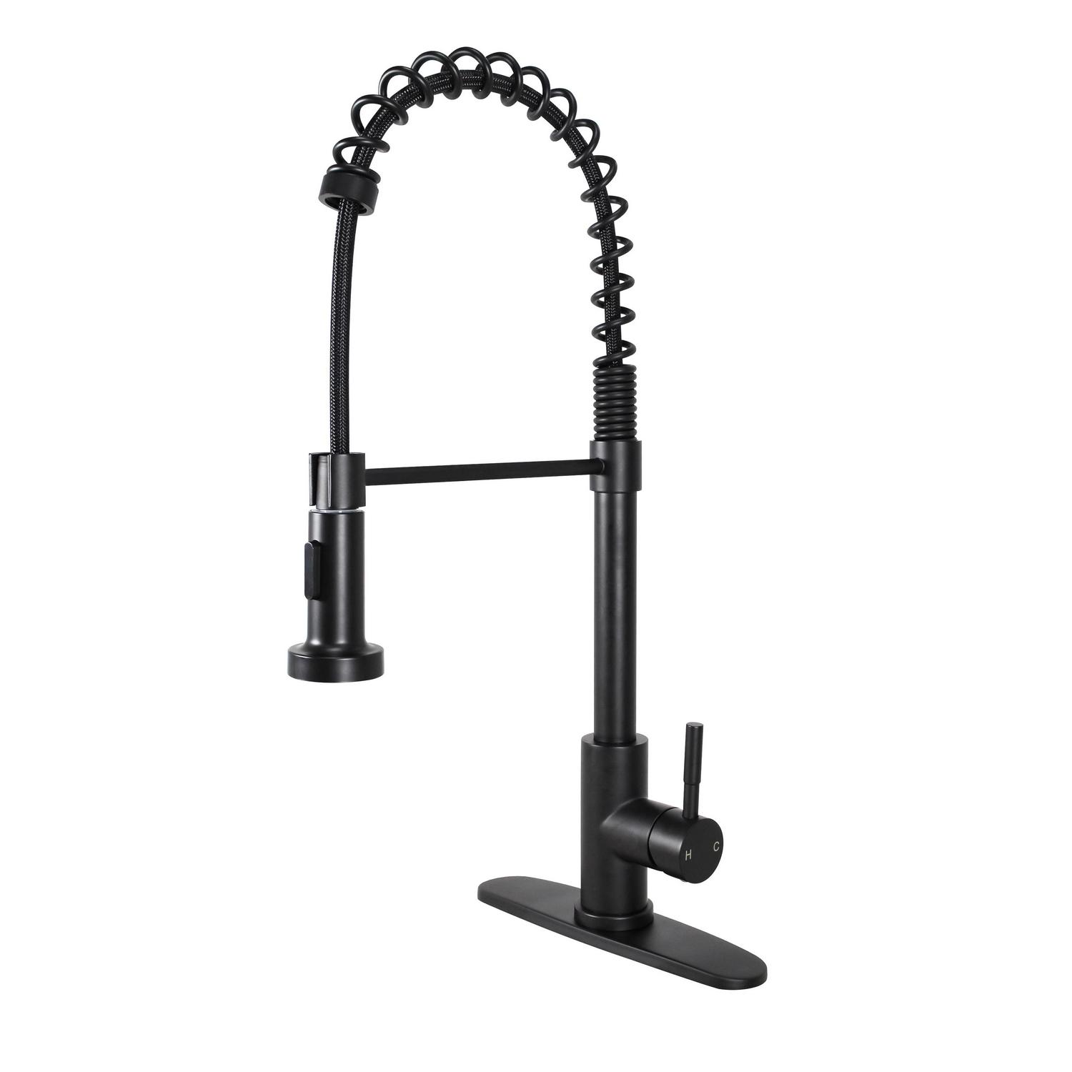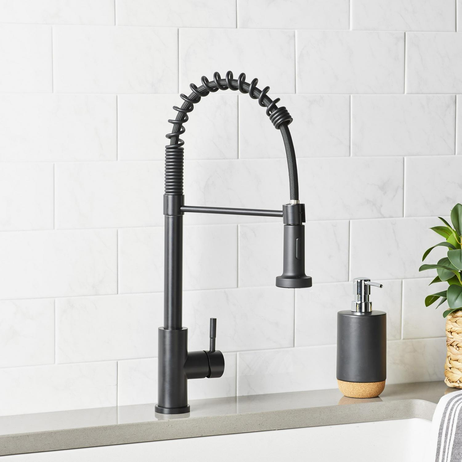 Better Homes and Gardens Elmont Single-Handle Spring Neck Pull Down Sprayer Kitchen Faucet, Matte Black