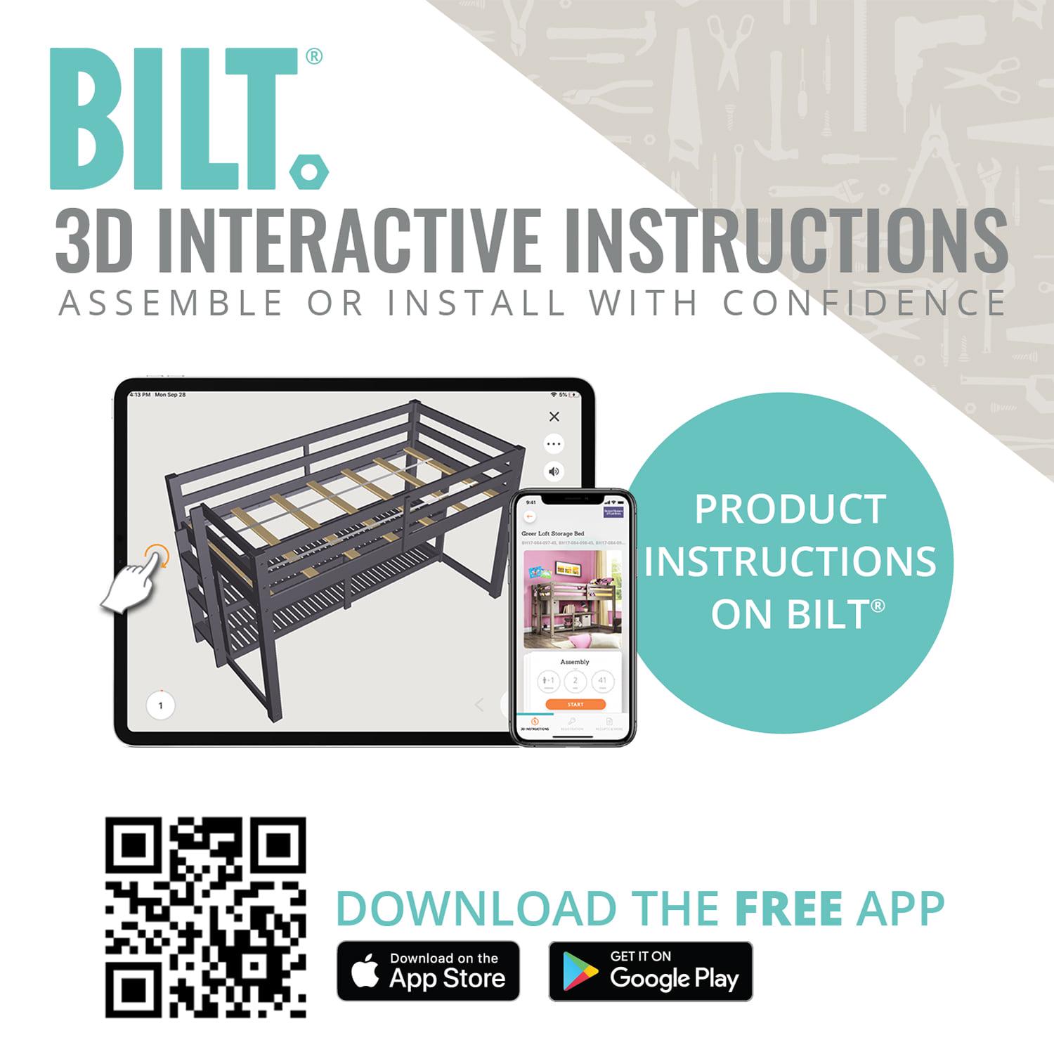 – 3D interactive assembly guide available through free BILT app (Download from the app store or Google Play)