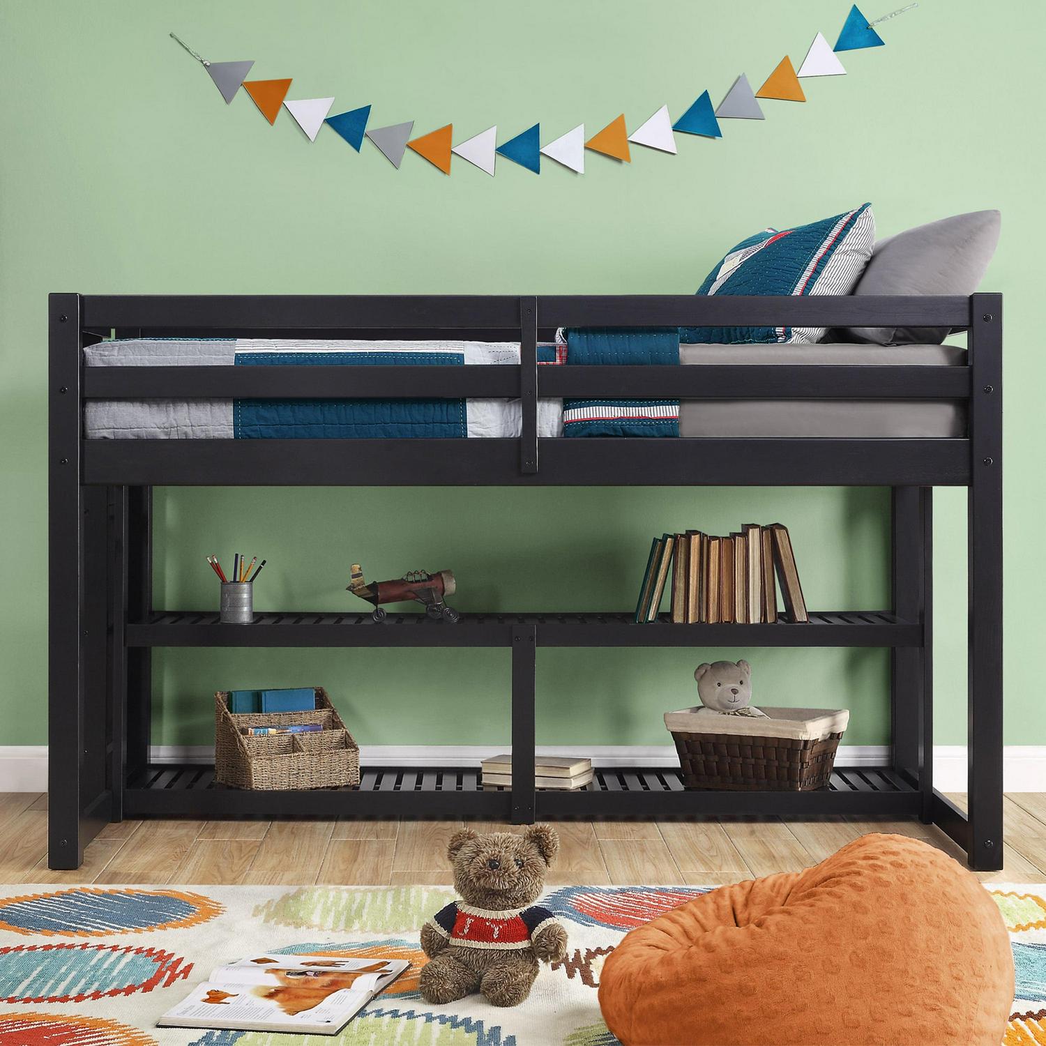 Better Homes and Gardens Greer Twin Loft Storage Bed, Black