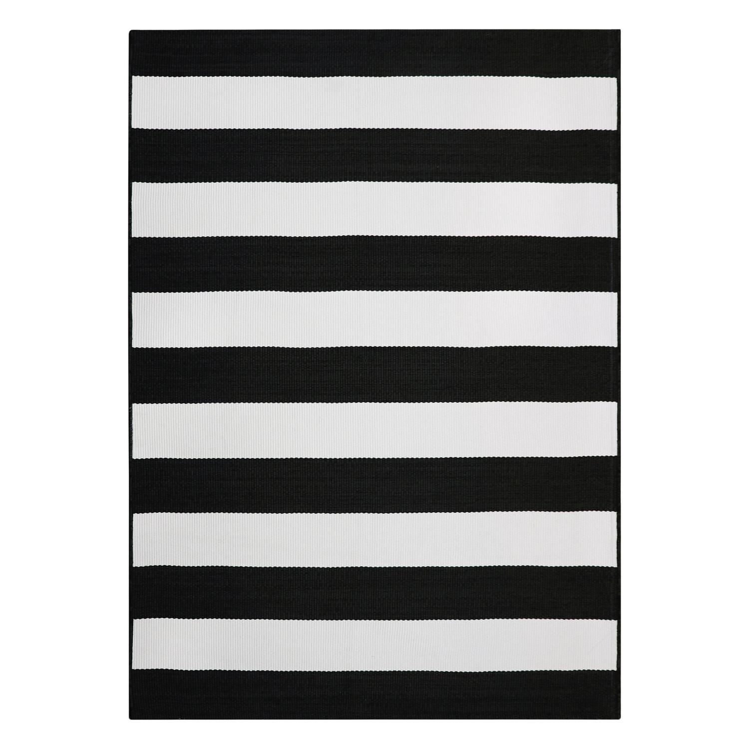 Better Homes and Gardens Ibiza Stripe Black and White Woven Outdoor Rug, 5 x 7
