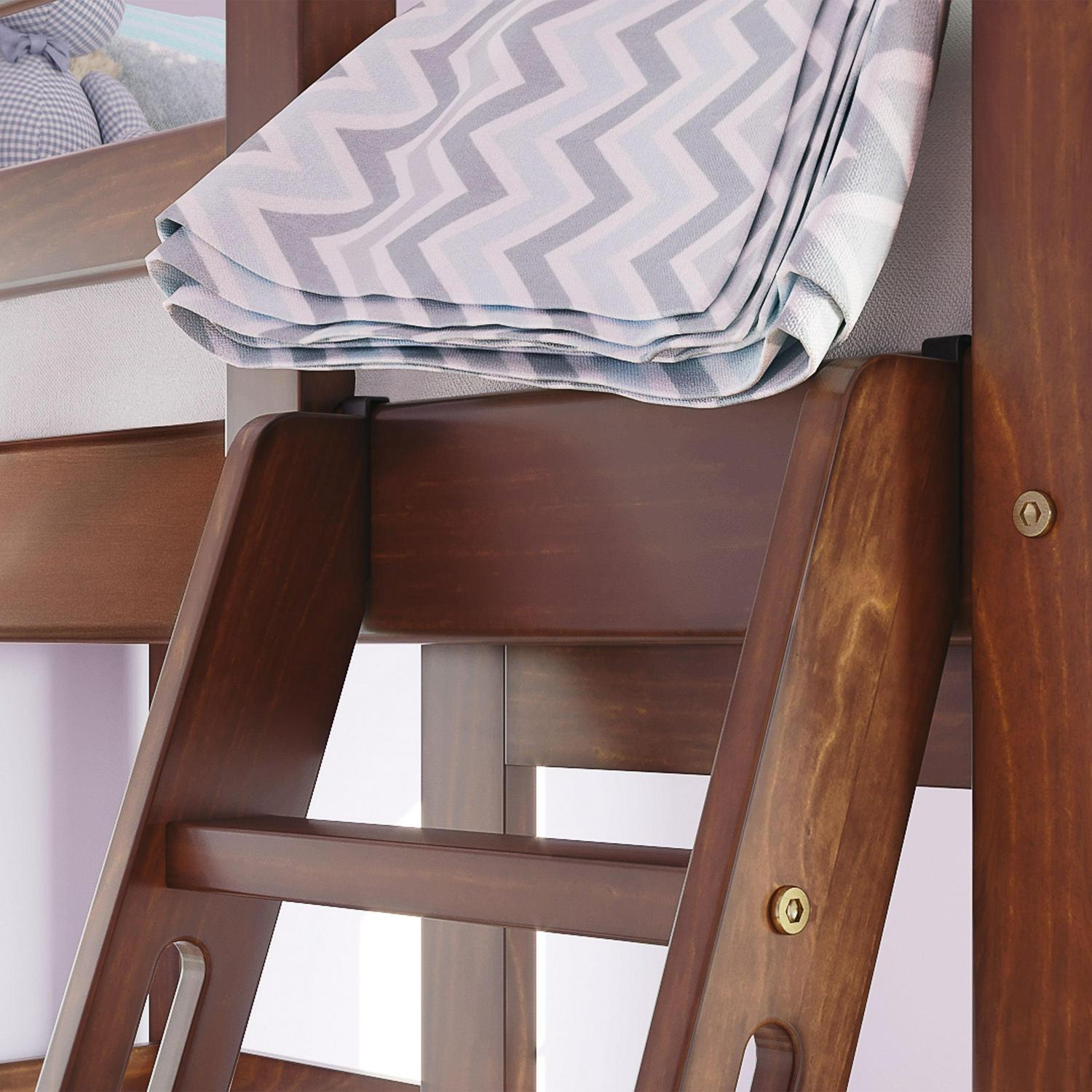 Better Homes & Gardens Kane Twin Loft Bed features a traditional style for a classic look in any bedroom. The elevated platform is complemented by an open-shelf bookcase that maximizes space in your home. Store children’s toys, books, craft materials, and more on the three shelves. Kids will love the free space the lofted bed creates to play, study, and spend time! The solid wood construction creates high quality and durable foundation for your kids. The lofted bed features clean and simple lines to match most any decor. Wooden mattress slats are included to support a standard twin-size mattress, eliminating any need for a box spring. The Kane is equipped with guardrails to keep the lofted bed secure and safe and an easy-to-climb ladder, leaving parents worry-free while their child sleeps. Available in an array of finishes to fit any style. Coordinates with the Kane Full-Size Bed (sold separately) to create the Better Homes & Gardens Kane Twin Over Full Bunk Bed.