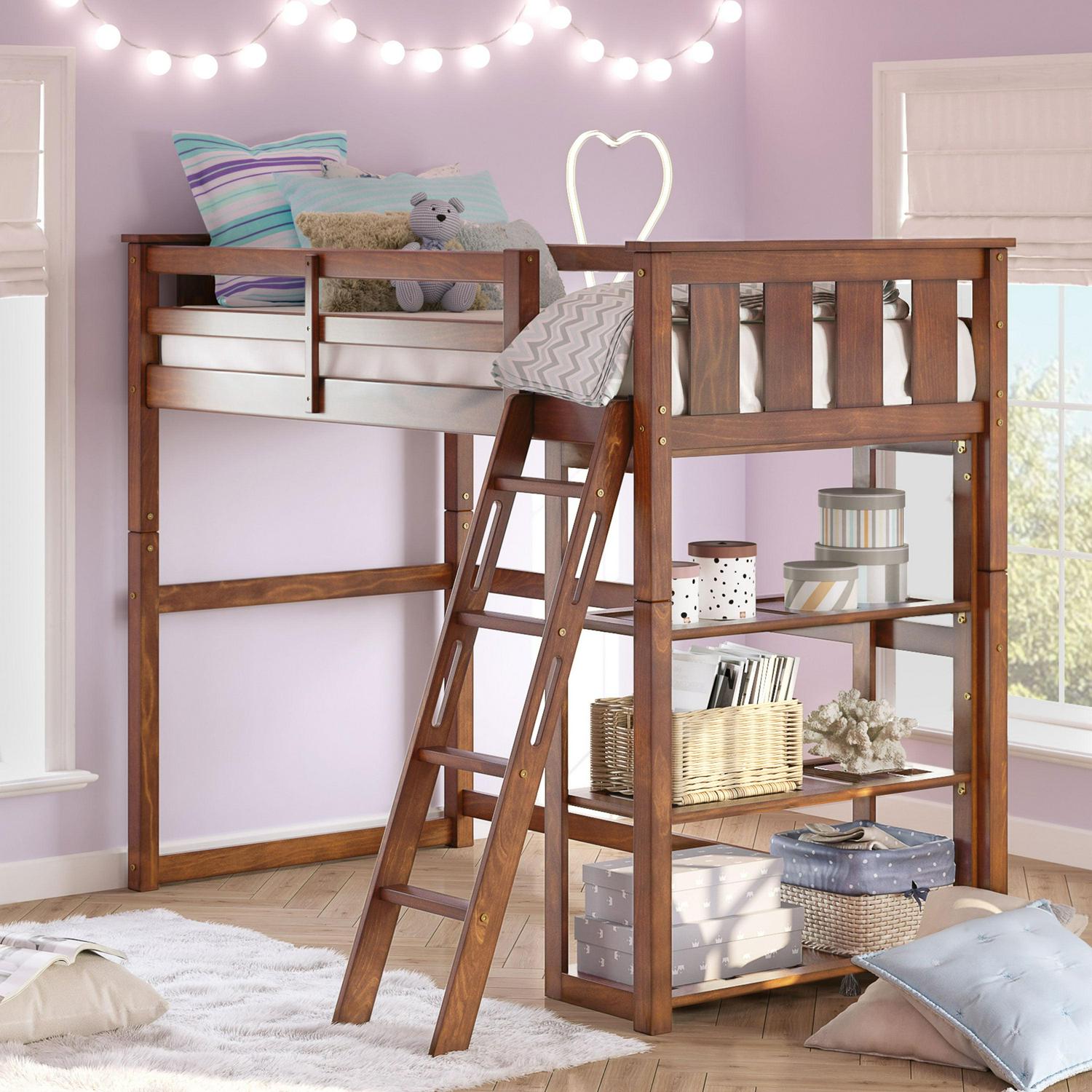 - Maximize space in your home with the Kane Twin Loft Bed with Bookshelf