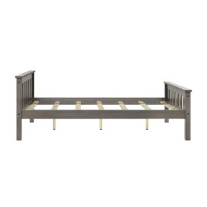 Add a timeless and classic style to your bedroom with the traditional designs of the Better Homes & Gardens Kane Full Size Bed. Perfect for transitioning kids to their teenage years or creating a gorgeous guest room with a simple, yet unique design. The headboard and footboard feature a natural finish with an open slat design to add character and clean lines to any room. The solid wood construction creates a fresh look with the conventional designs of the frame. Wooden mattress slats are also included for support, eliminating any need for a bulky box spring. The frame accommodates any full size mattress whether your prefer memory foam, latex or springs. Available in an array of finishes like Mocha, White and Gray allows you to find the perfect match for your decor. Coordinates with the Kane Twin Lofted Bed (sold separately) to create the Better Homes & Gardens Kane Twin Over Full Bunk Bed. Customize any bedroom with the Kane Collection.