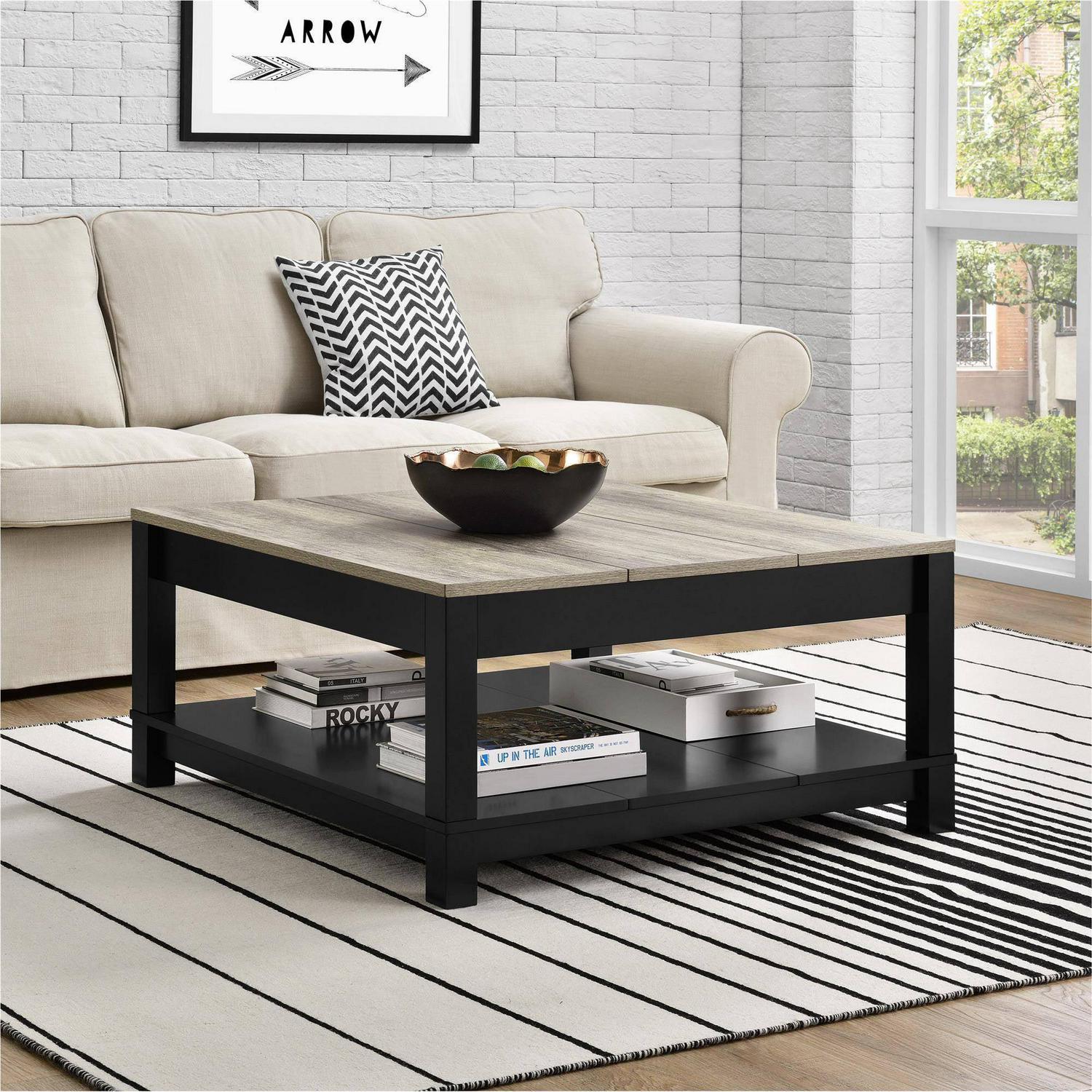 The simple, yet elegant design of the Better Homes & Gardens langley bay coffee table makes it the centerpiece of your living room. This item is beautiful and functional. The coffee table is perfect for showcasing your decorative items or keeping all your magazines and remotes in one place. The Ameriwood Home coffee table features a matte black finish with a distressed woodgrain top that creates a refined, clean look in your home.