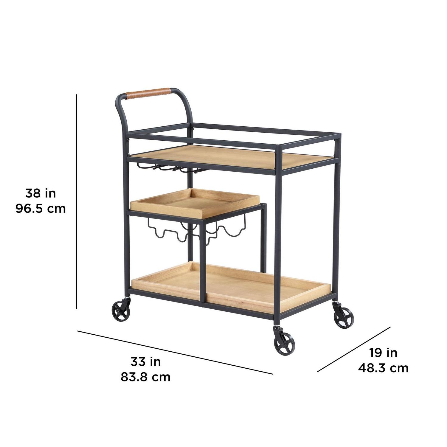 Update the look of your home with this Better Homes & Gardens Lasalle Bar Cart by Dave & Jenny Marrs. Featuring a white oak finish, this bar cart has clean lines and a timeless design that will revitalize any space. Designed with multiple shelves for storage, this bar cart has casters that make it easy to move from room to room. Easy to assemble, this bar cart is durably constructed out of quality materials. Coordinate it with other artisanal home pieces from the Dave & Jenny Marrs collection. This Better Homes & Gardens Lasalle Bar Cart by Dave & Jenny Marrs will add effortless style to any room.