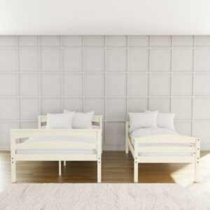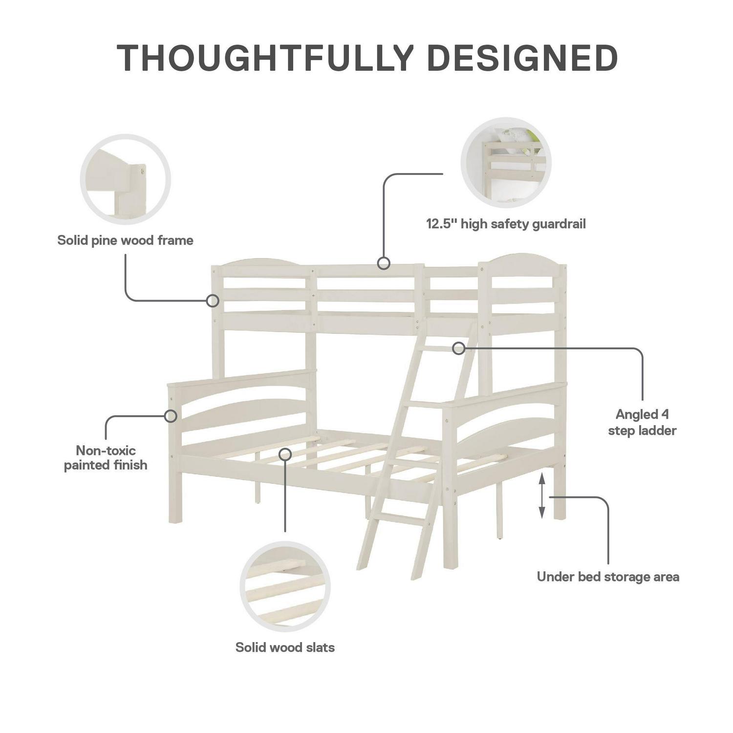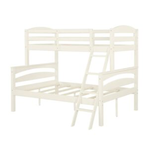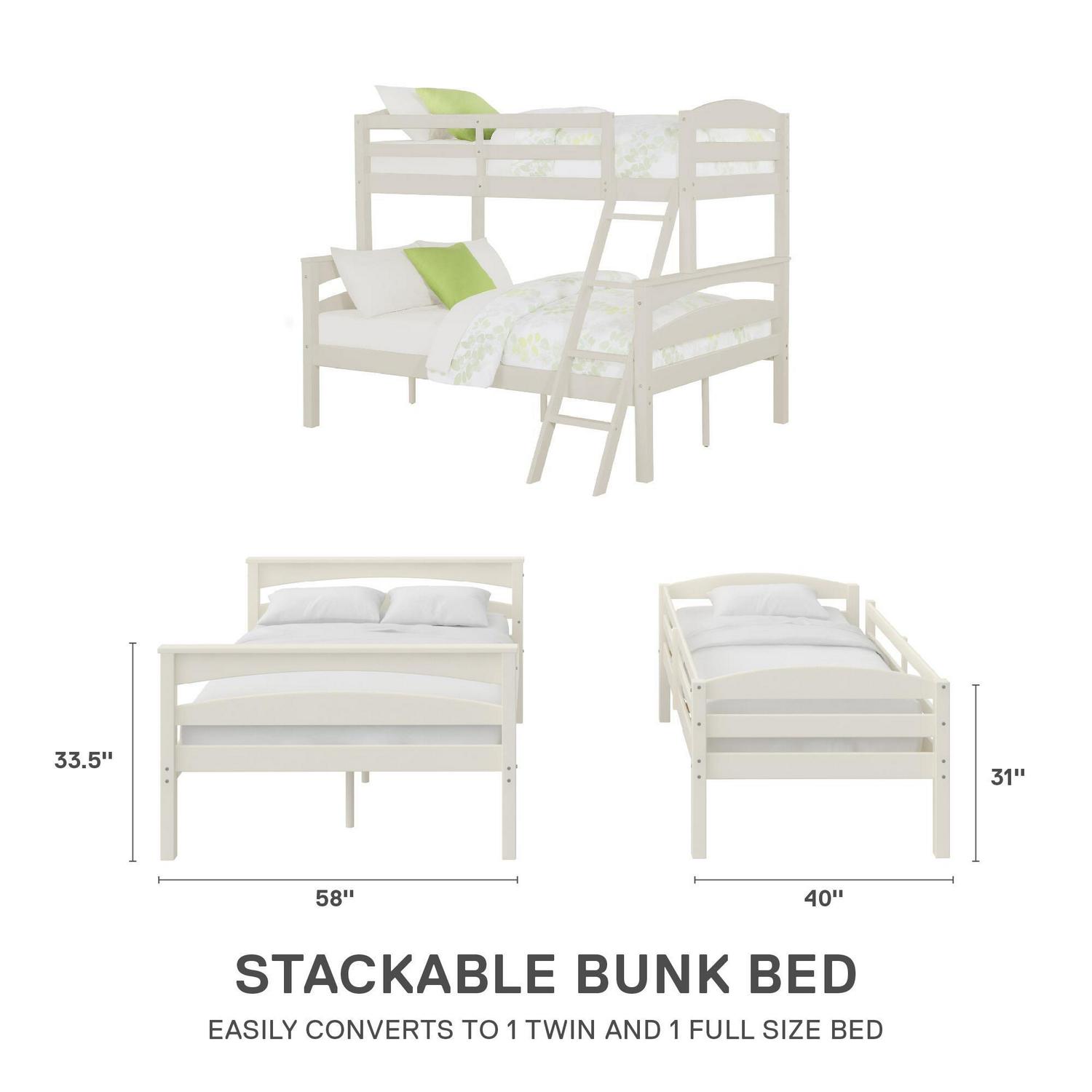 The Brady Twin over Full Bunk Bed is a bedroom space saving solution that both parents and children alike will love. The practical stackable design of this bunk bed lets children have a safe and fun area to sleep, all while maximizing room space for children to play in. The Brady Bunk Bed features a solid wood construction with a 13″ upper guardrail for added safety and an easy-to-climb 4-step angled ladder to reach the top bunk. What’s more, support slats for both beds are conveniently included in this set and eliminate the need for any additional box spring or foundation. The DHP Brady Twin over Full Bunk Bed can also be separated and converted into two stand-alone beds for when your kids grow up and want their own space. With such versatility and durability, and with multiple color options available, the versatile Brady Twin over Full Bunk Bed is sure to suit your needs.
