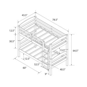 – Individual bed assembled dimensions: 43.5″W x 78.5″L x 33.5″H and 31″H