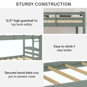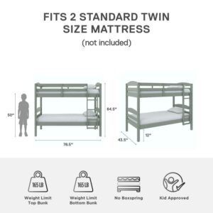 Better Homes and Gardens Leighton Solid Wood Twin-over-Twin Convertible Bunk Bed, Sage Green