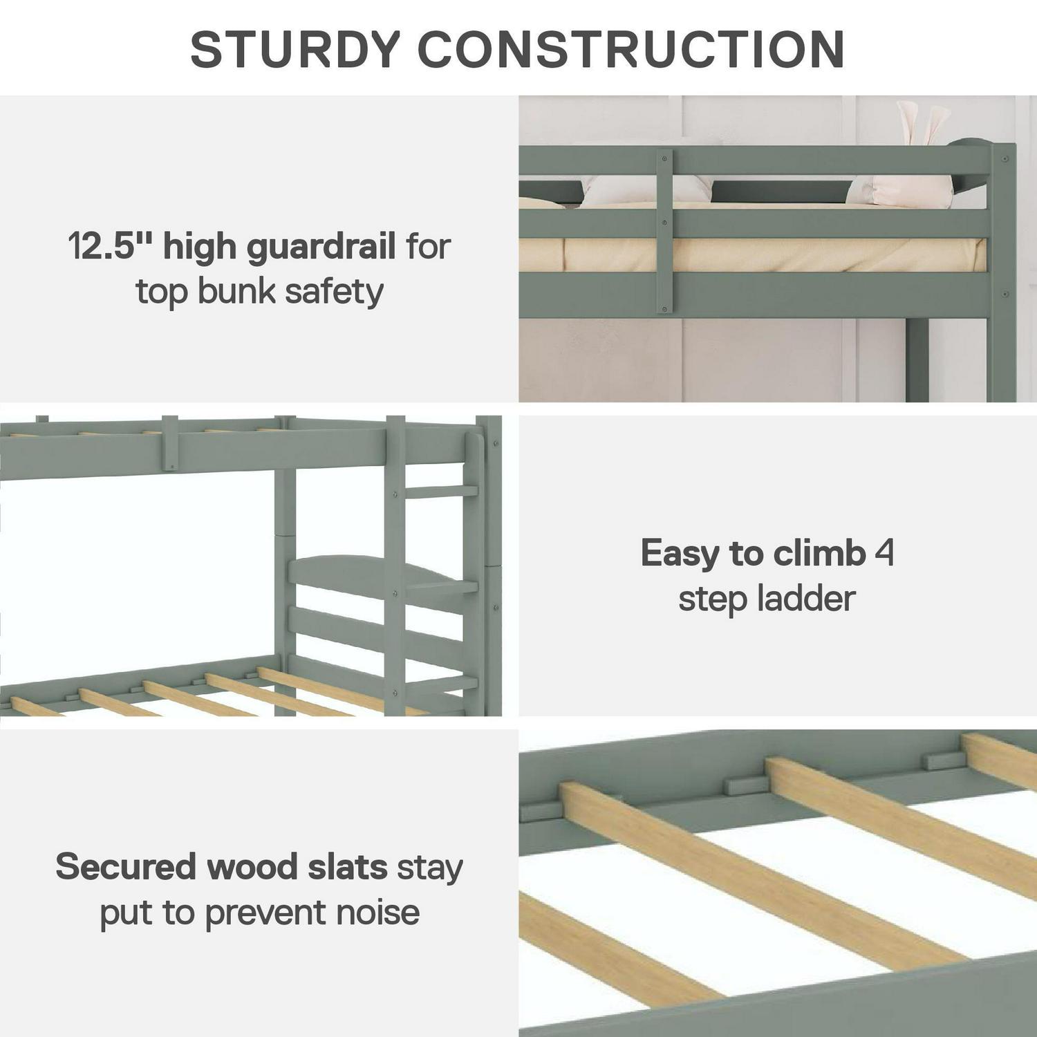 – Better Homes & Gardens Leighton Solid Wood Twin-over-Twin Convertible Bunk Bed, Sage Green