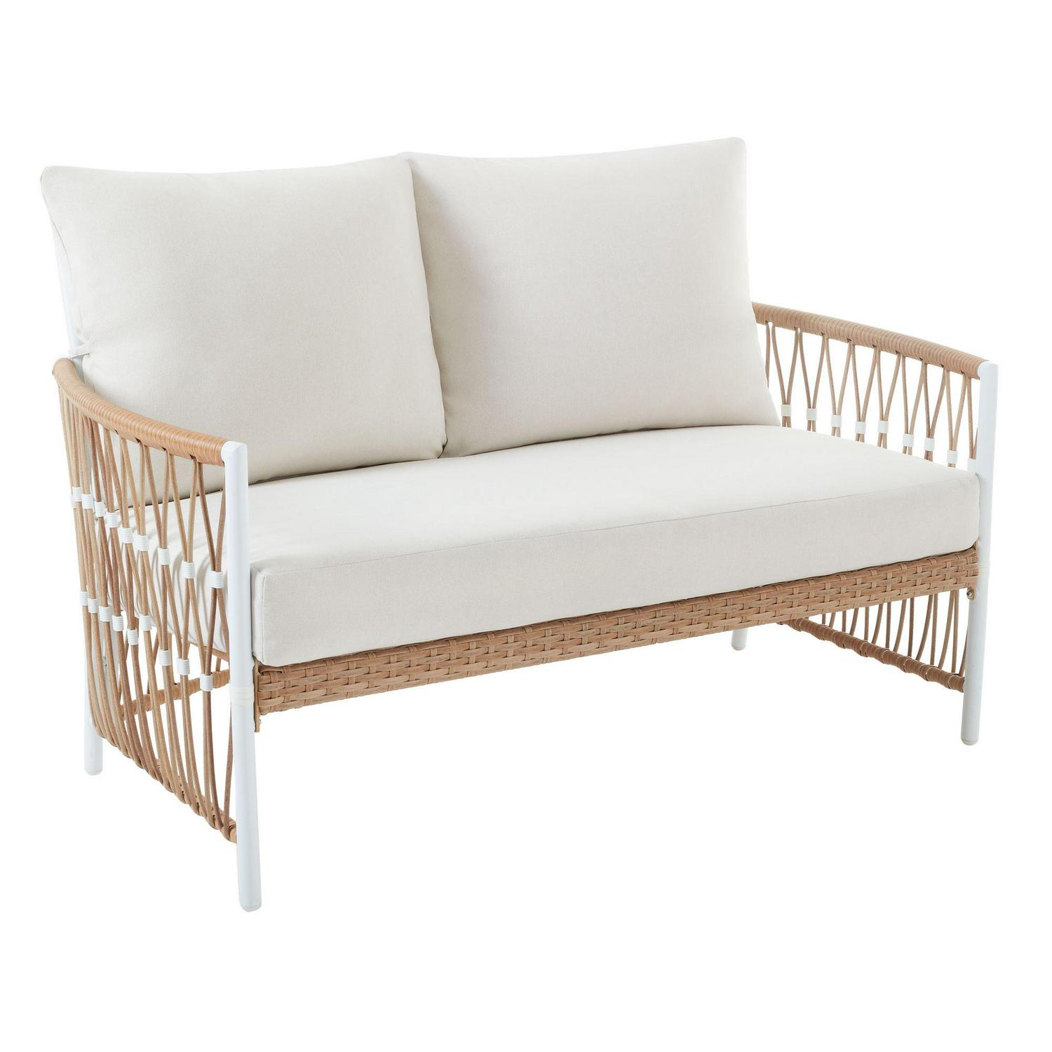 Better Homes and Gardens Lilah 2-Piece Outdoor Wicker Loveseat and Ottoman, White