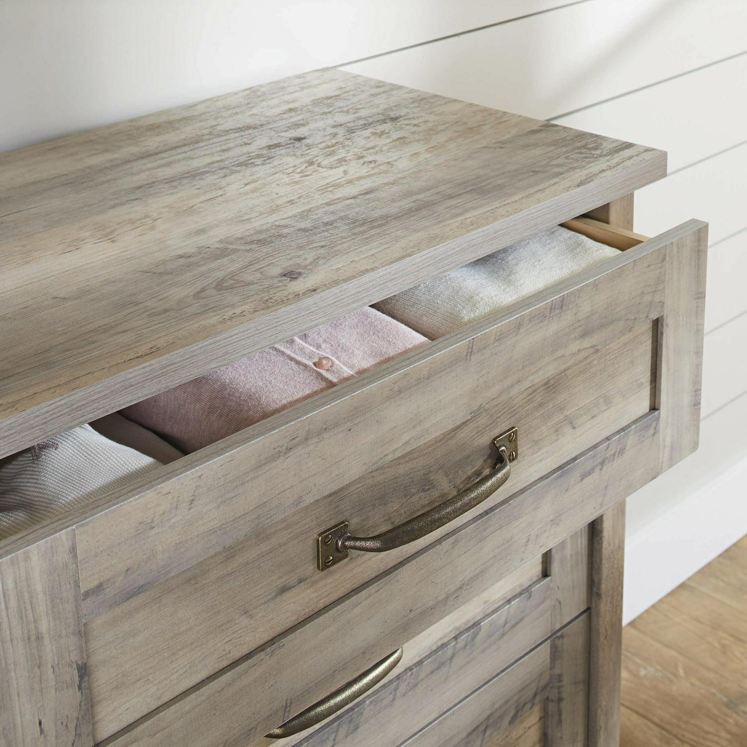 There is no such thing as too much storage space. Create versatile storage for all your things while adding beautiful style and charming design with this 4-drawer chest from the Better Homes & Gardens Modern Farmhouse collection. This handsome chest of drawers features four large drawers that open and close on smooth metal runners, making them ideal for easy access storage of an array of different items like stacks of your favorite blouses and your best-fitting jeans to your secret collection of old t-shirts and your comfy sweatpants. You can find a space for all your things! It also features a spacious top surface that provides you with room to store additional bedroom items or display home decor like an accent lamp, bottles of cologne, your makeup bag, and pictures of your family and friends too. Its framed panel doors and stylish hardware give this dresser a look that is sure to stand out in your bedroom. Finished in Rustic Gray, this stunning chest of drawers is the solution to all your storage woes.