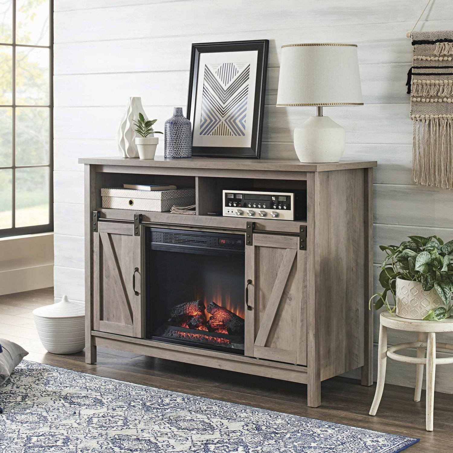 Better Homes and Gardens Modern Farmhouse Fireplace TV Stand for TVs up to 50 , Rustic Gray Finish
