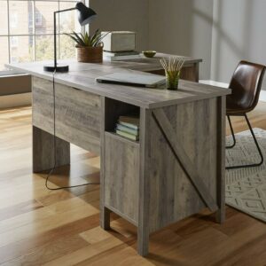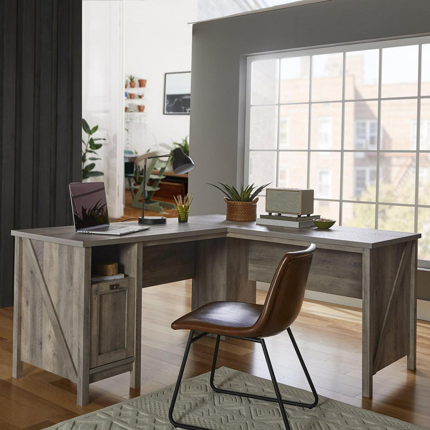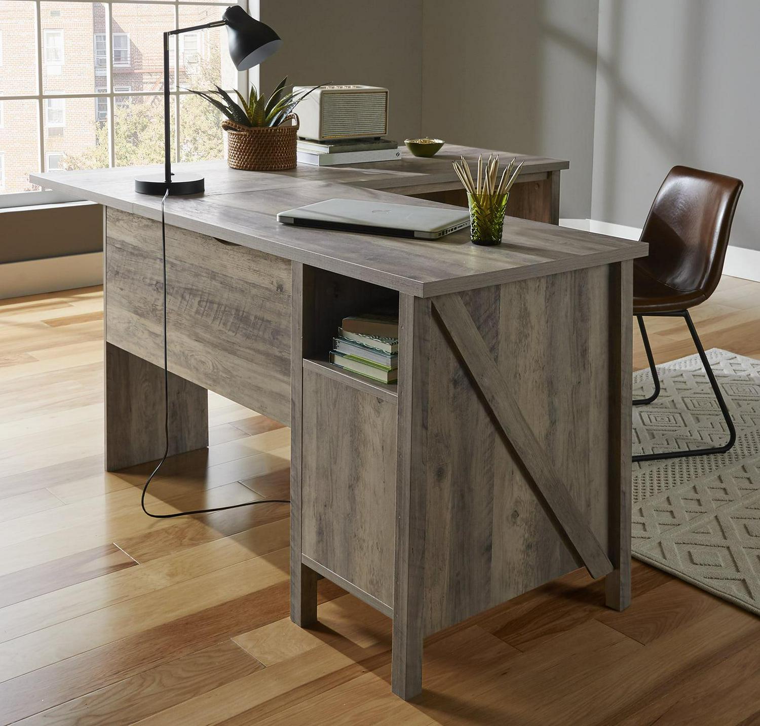 – Better Homes & Gardens Modern Farmhouse L-Desk, Rustic Gray Finish: