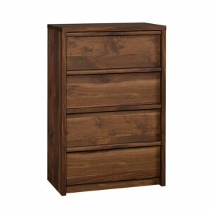 Tuck away your wardrobe in minimalist style with this 4-drawer chest from the Montclair collection. Find room for your array of blouses and slacks in one of the four drawers that open and close on smooth metal runners. Finished in Vintage Walnut, this dresser will have your bedroom feeling stylish and organized in no time. We hope you like what you see. Our designers travel the world and bring back the best and latest in style, finish, and color trends. This inspiring world travel is evident in the cutting edge and innovative furniture solutions we offer to you! Other affordable furnishings from the collection (sold separately) are available to complete the look. .