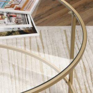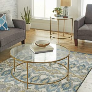 Liven up your living room with this versatile coffee table from the Better Homes & Gardens Nola collection. It’s spacious, safety-tempered glass top makes it the perfect place to set your early morning cup of coffee and those magazines you’ve been dying to read. This transitional table has a metal construction and is available in both black and gold finishes to ensure it’ll match your own unique style. The Better Homes & Gardens Coffee Table is simple yet versatile, giving you tons of placement options within your home. Whether it is for your living room, home office or a reading nook, it is perfect to hold your cups of coffee or books. Finished on all sides, this metal coffee table will be the center of attention in any room. This BH&G Nola table measures 35.98 in diameter and is 16.5 tall.