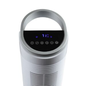 – Tower construction with a small footprint makes this fan perfect for any room with a limited space