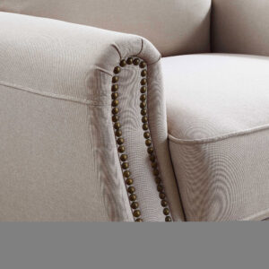 – High-quality taupe fabric upholstery and bronze nail-head trim, along with hand-finished solid wood legs in an espresso brown, make this contemporary chair the perfect furniture accent for any room.
