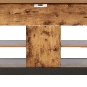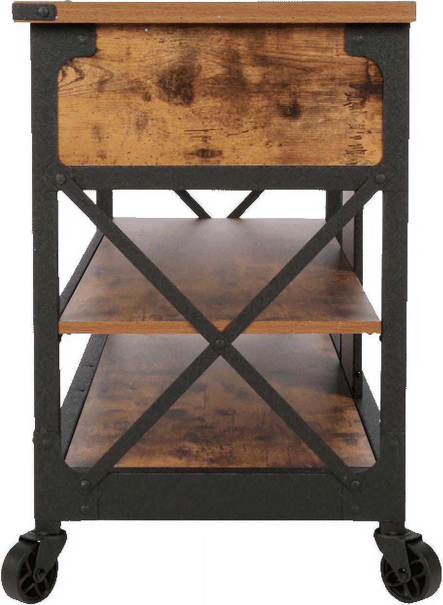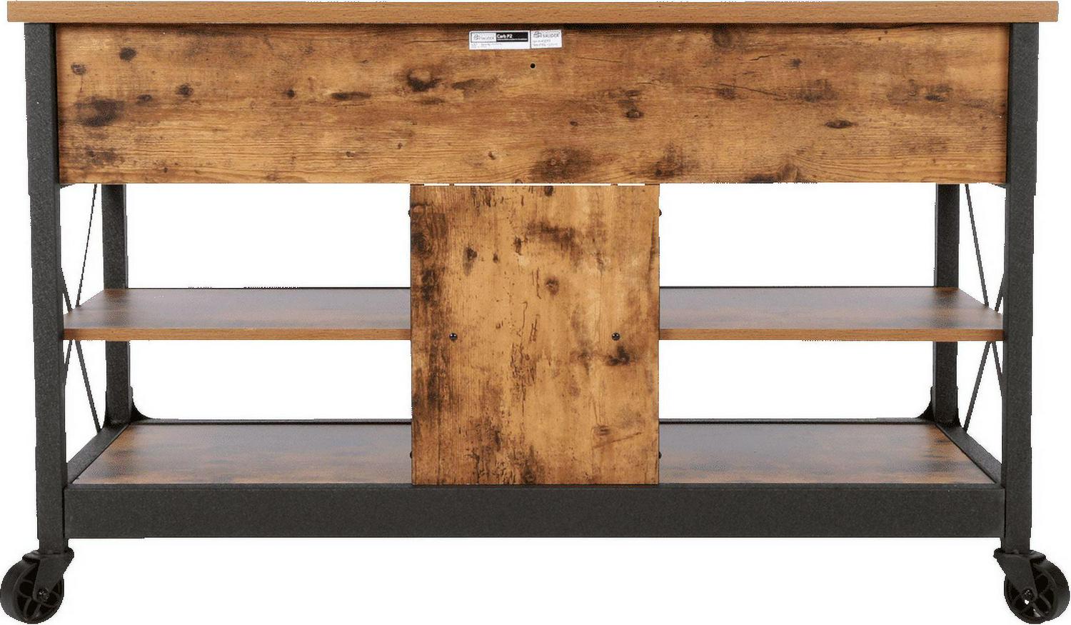- Weathered Pine Finish with black metal accents