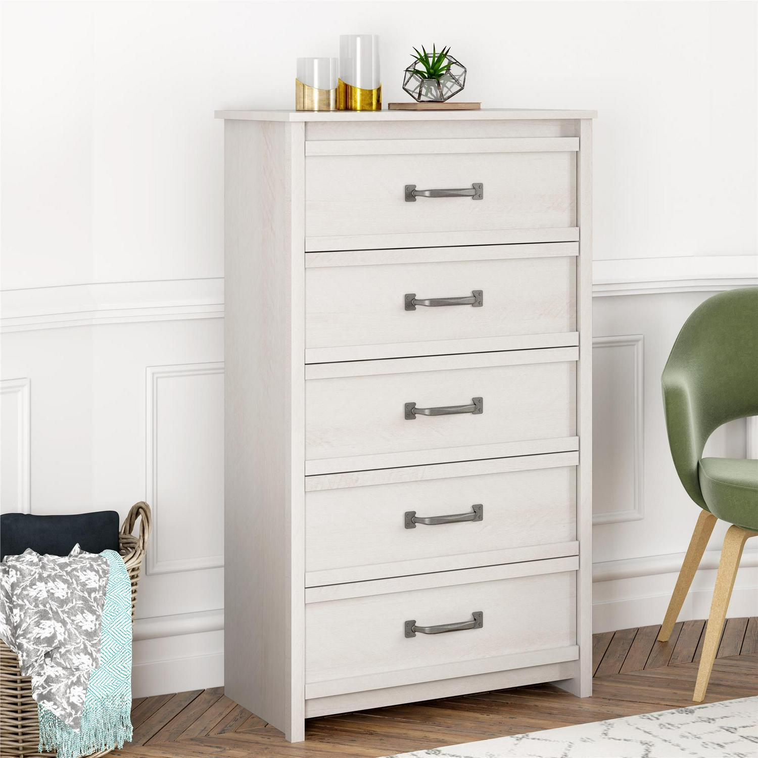 – Add a modern farmhouse touch to your bedroom with the Better Homes & Rustic Ranch 5 Drawer Dresser