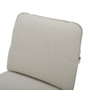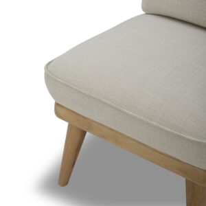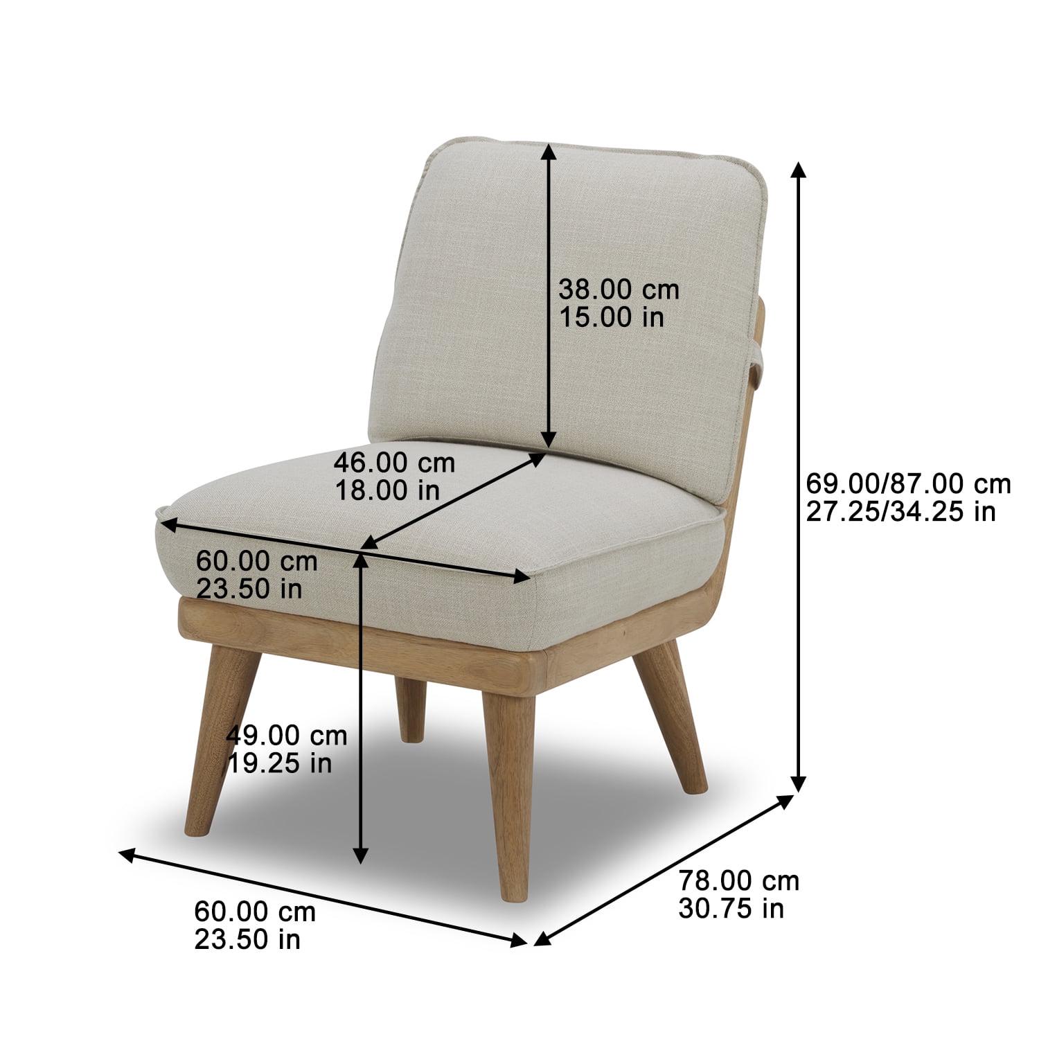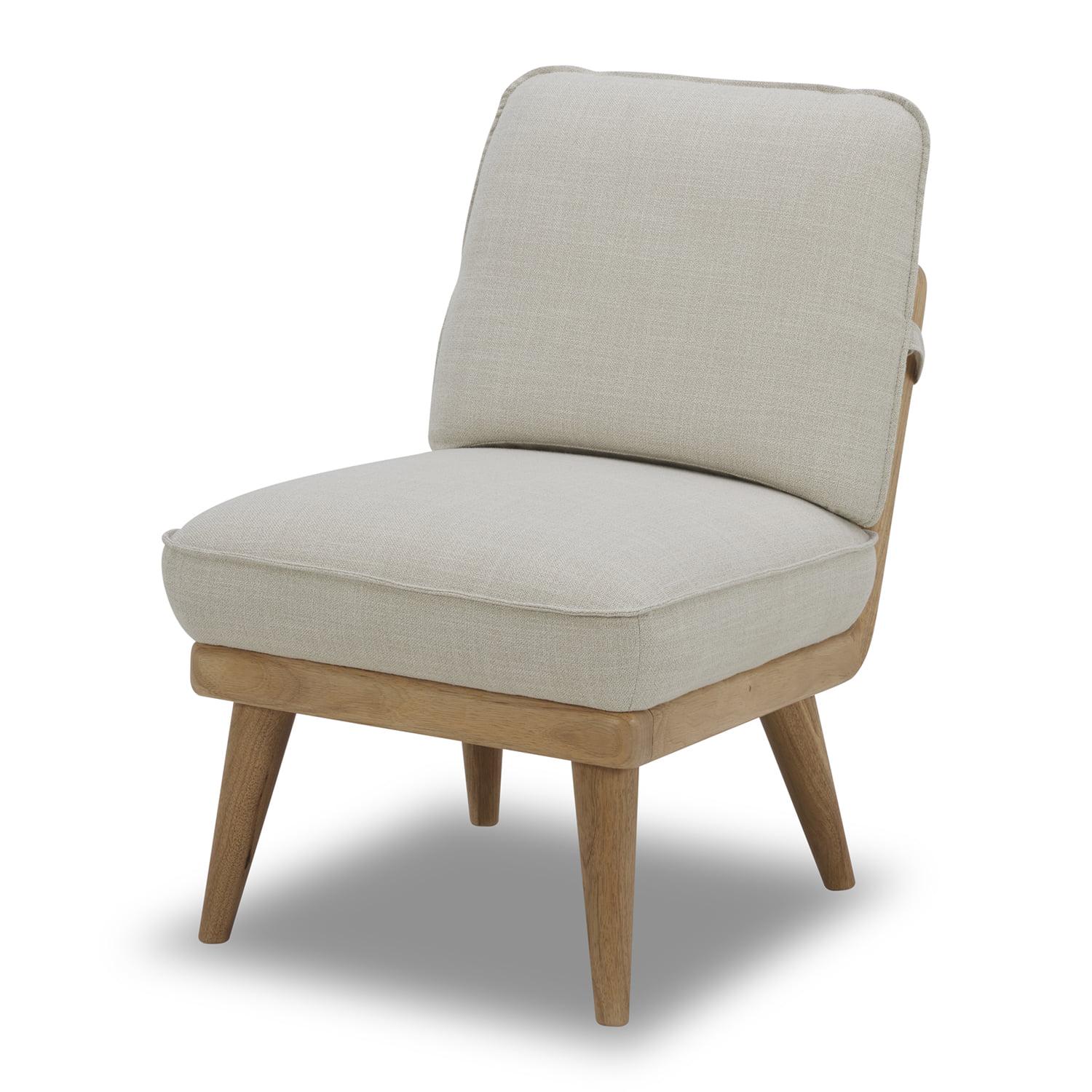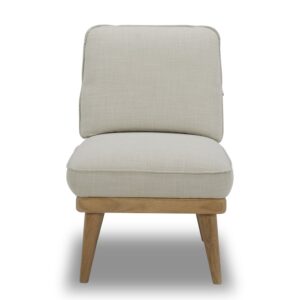 Lounge in modern comfort with the Better Homes & Gardens Slipper Chair. The classic style and clean lines of this armless slip chair create a modern oasis in any space. Sitting on a low-rise wooden frame with a light finish, you are welcomed with a large seat cushion and backrest. The fixed seat cushion and loose pillow back are covered in white fabric, an easy-to-clean, family-friendly fabric. Simple stains come out quickly with water and blotting, while tougher stains are removed with a household cleaner. The slipper chair offers trouble-free, enduring quality with solid hardwood construction and reinforced joints, with premium high-density foam and a heavy no-sag suspension construction system. Get started relaxing with no delay: assembly is easy and fast by simply attaching the legs to the base of the modern chair.