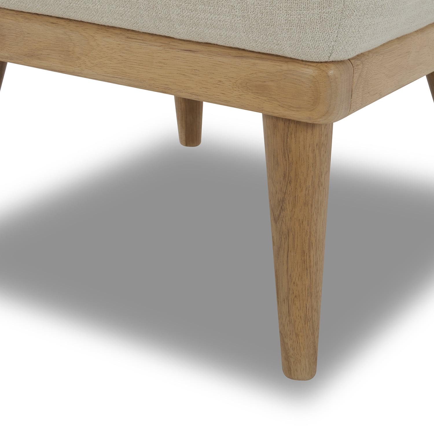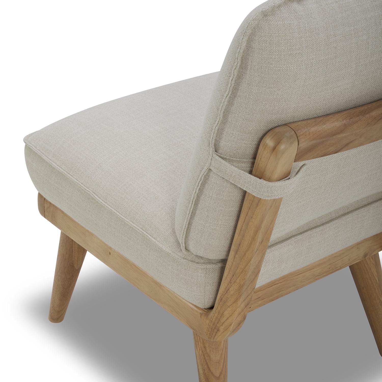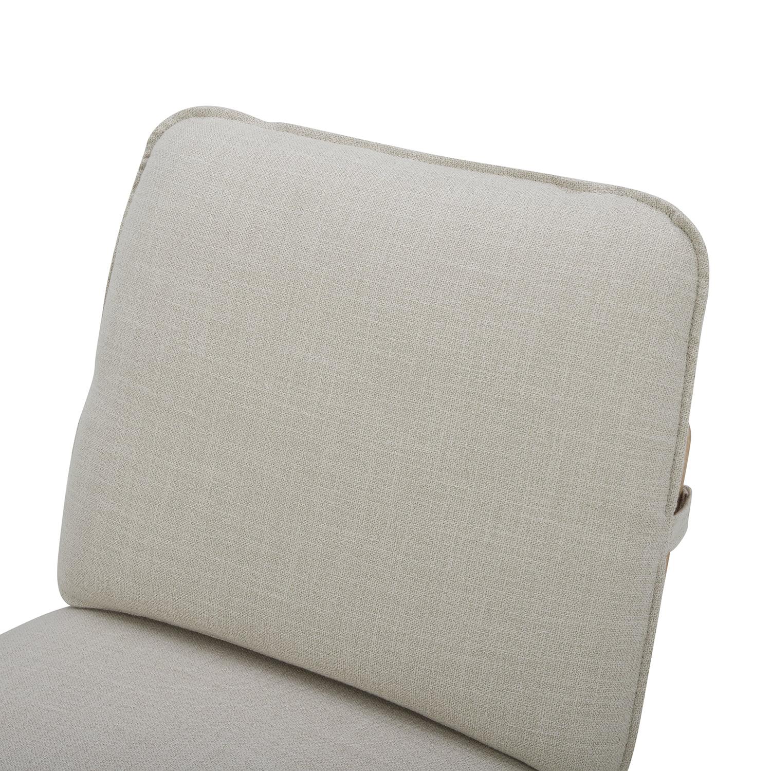 Lounge in modern comfort with the Better Homes & Gardens Slipper Chair. The classic style and clean lines of this armless slip chair create a modern oasis in any space. Sitting on a low-rise wooden frame with a light finish, you are welcomed with a large seat cushion and backrest. The fixed seat cushion and loose pillow back are covered in white fabric, an easy-to-clean, family-friendly fabric. Simple stains come out quickly with water and blotting, while tougher stains are removed with a household cleaner. The slipper chair offers trouble-free, enduring quality with solid hardwood construction and reinforced joints, with premium high-density foam and a heavy no-sag suspension construction system. Get started relaxing with no delay: assembly is easy and fast by simply attaching the legs to the base of the modern chair.