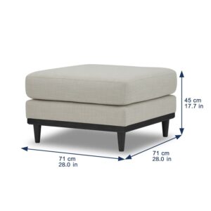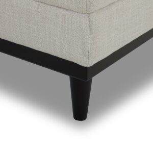 You deserve to put your feet up on the Better Homes & Gardens Modern Fabric Ottoman with a chic black finish on the minimalist base and solid wood tapered legs. The clean lines of this rectangular ottoman bring a calming comfort to any space. The ottoman, finely tailored with matching stitching, is covered in the inviting, natural-colored Elfie Linen, an easy-to-clean and family-friendly performance fabric. Simple stains come out easily with just water and blotting, while tougher stains are removed with household cleaner. Both the fabric and the ottoman offer trouble-free, enduring quality with solid hardwood construction and reinforced joints, along with premium high-density foam and a heavy no-sag suspension construction system. Get started relaxing with no delay: assembly is easy and fast by simply attaching the legs to the base of the modern ottoman.