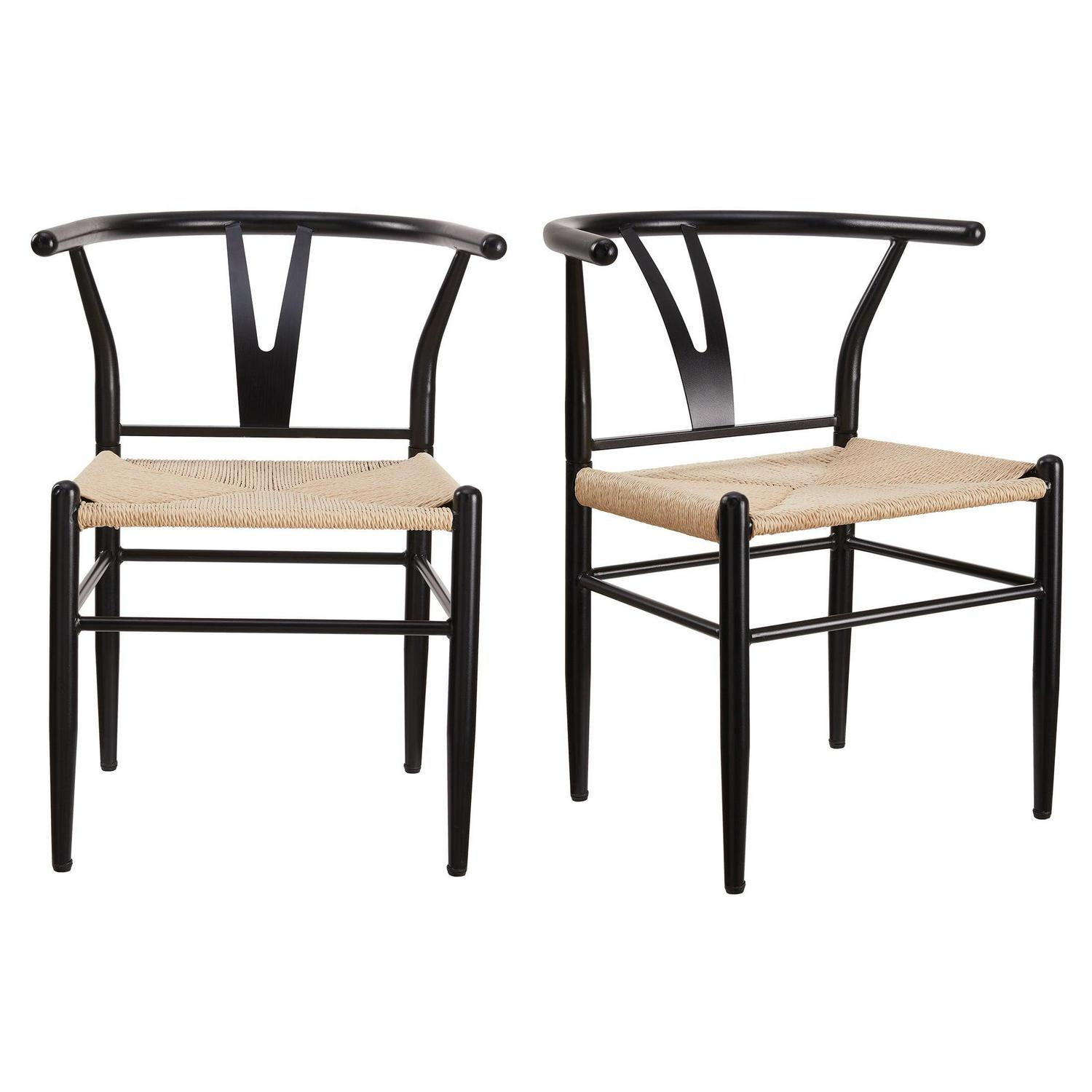 Better Homes and Gardens Springwood Wishbone Chair 2 Pack, Metal Base with Black Finish for Indoor