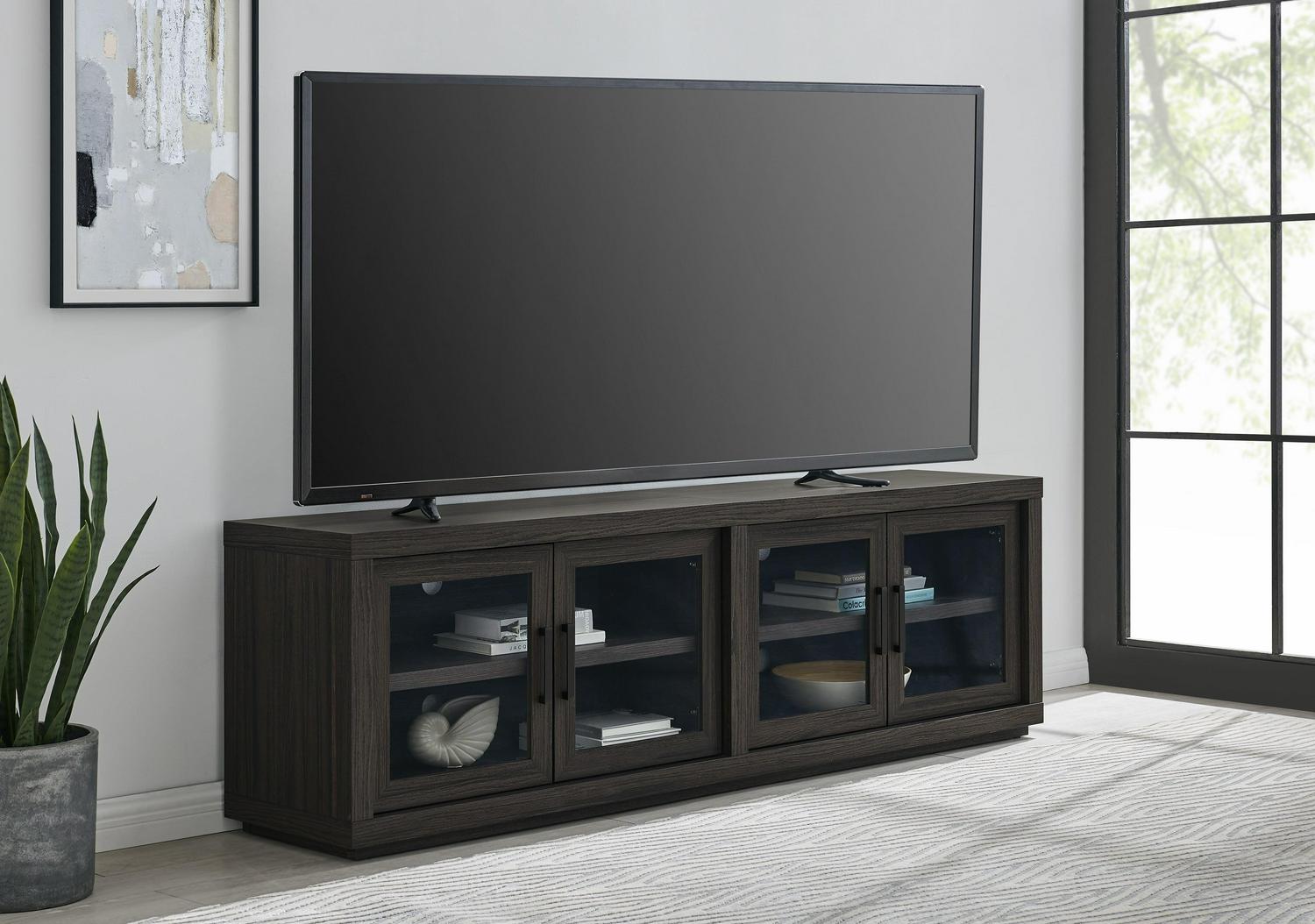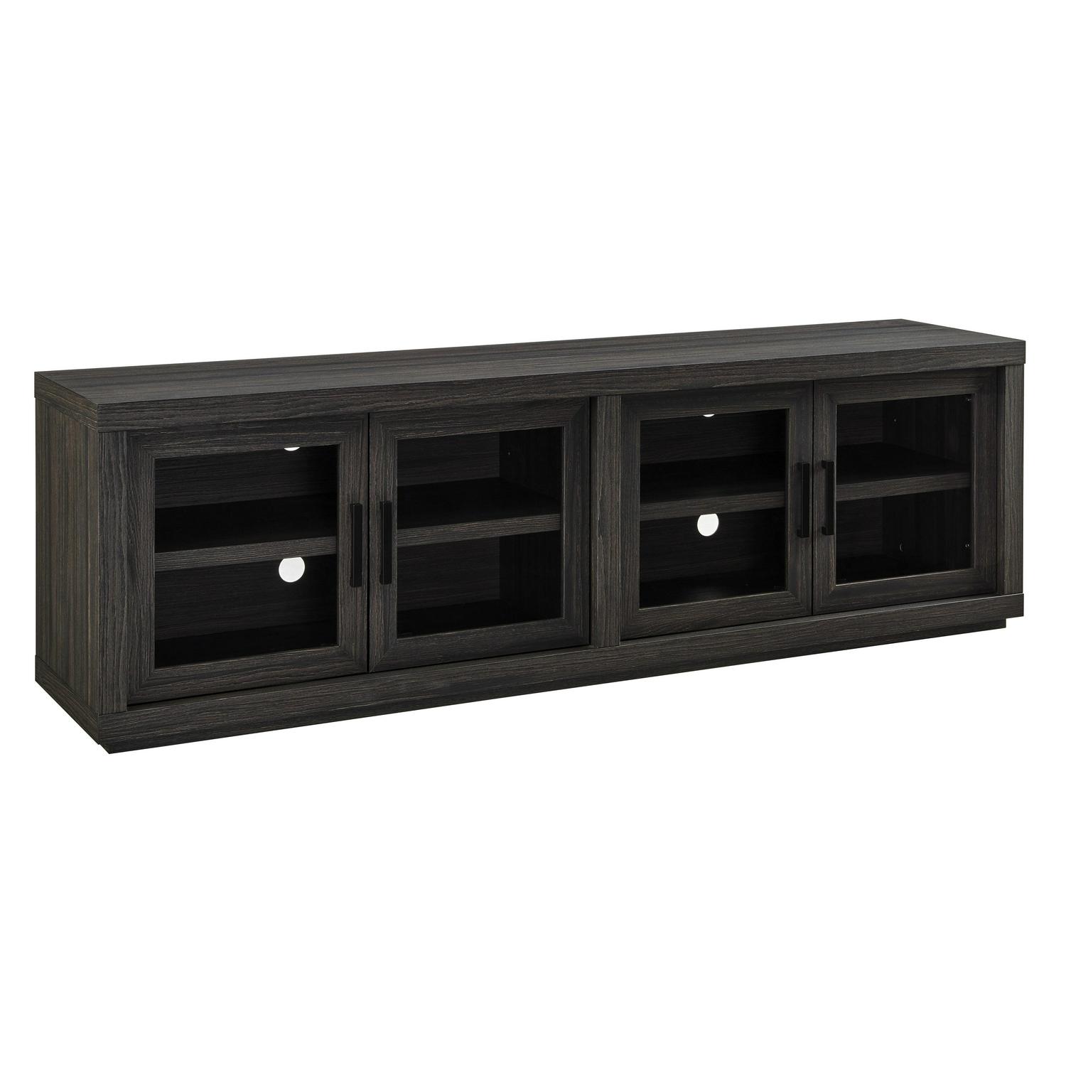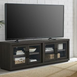 Better Homes & Gardens Steele Media TV Console for TVs up to 80″, Espresso The modern look and clean lines make this TV stand fit well with any decor. From gaming consoles and accessories, to components for your television, speakers, dvd’s and blu-rays, even board games and books, this versatile furniture is sure to keep you room clutter free. Accommodates most flat panel TVs up to 80″ and 135 lbs Easy assembly