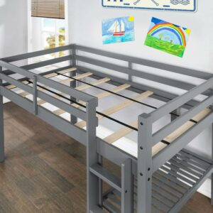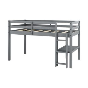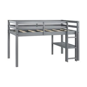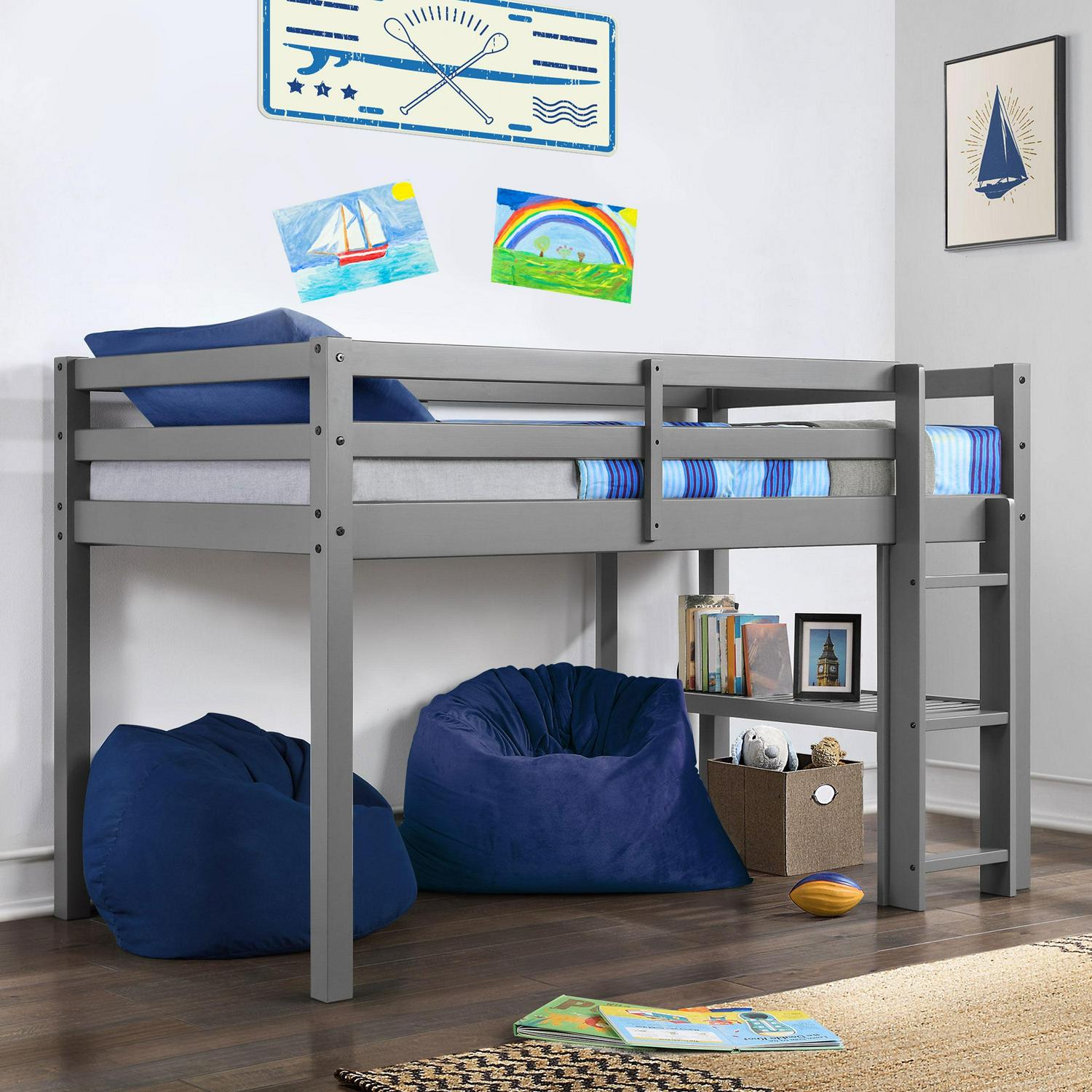 The Better Homes & Gardens Twin Loft Bed will be the envy of any child’s bedroom. The under-bed area is a great multi-functional space that can be used for storage or be set up as a reading or study nook. The large shelf integrates well into the space-saving design of the bed. The Better Homes & Gardens Fabric Bins fit great on this shelf for even more storage and organizing options (sold separately). It’s perfect for storing books, toys, and other small accessories. You can trust in the security of this bed with the sturdy side guard rails and built-in ladder for secure climbing. Another great feature of this bed is the beautiful medium gray finish. It coordinates with most any room decor styles and color palettes. The Better Homes & Gardens Twin Loft Bed with Storage complies with ASTM safety standards to provide the highest level of safety for children of all ages.