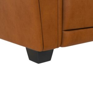 – Sturdy wood construction with comfortable pocket coil seating that is covered by a soft faux leather upholstery with vertical channel back tufted design. The chair sits on solid wood legs.