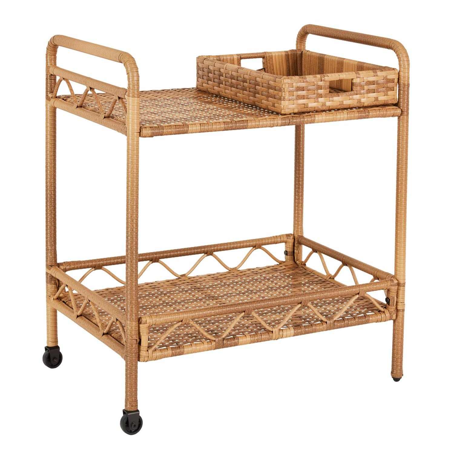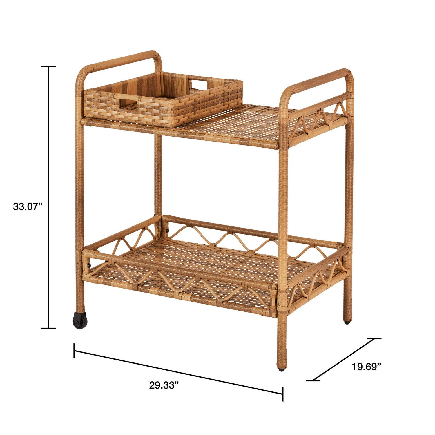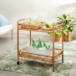 Better Homes & Gardens Willow Sage Steel Wicker Bar Cart, Brown