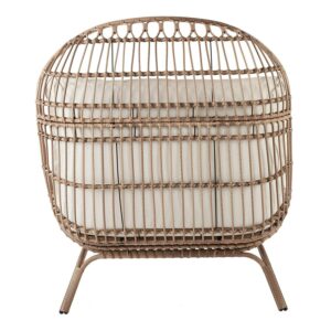 – Product materials: Steel, wicker, solution-dyed polyester with 50% recycled material