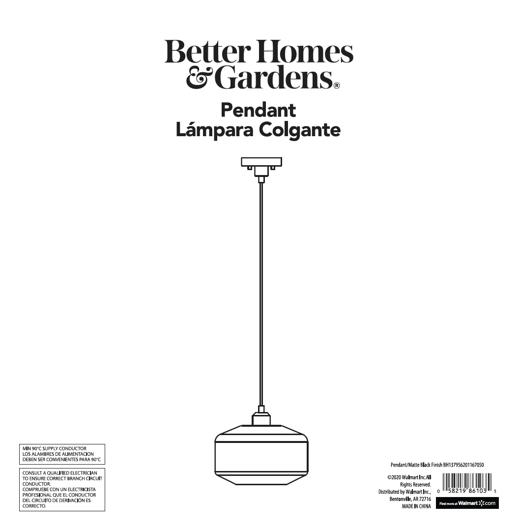 A vintage shaped clear glass shade is paired perfectly with a modern matte black finish to make the Better Homes & Gardens 1-Light Pendant Light Matte Black finish ideal for a dining room, hallway, entranceway, bedroom or kitchen. Bringing a subtle sophistication to any area it is placed, this schoolhouse-style hanging light fixture is a delight for the eyes. The clear glass shade exposes the bulb of your choice allowing you to change the look and feeling of the fixture at any time. Add a vintage Edison bulb to keep with the vintage style or try a designer bulb to add a modern touch.