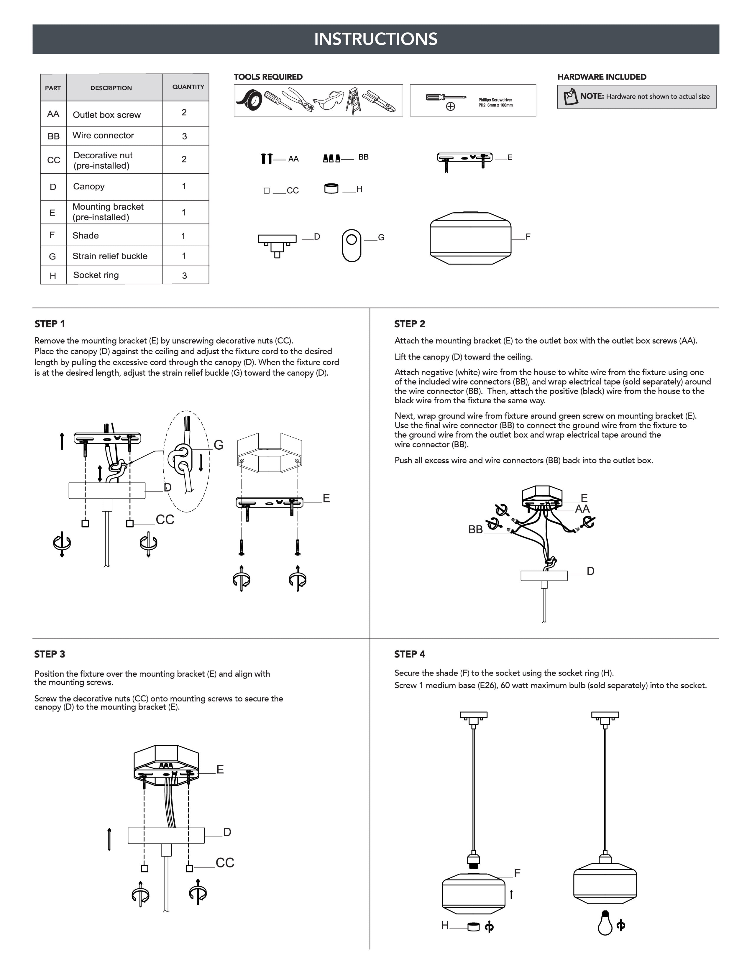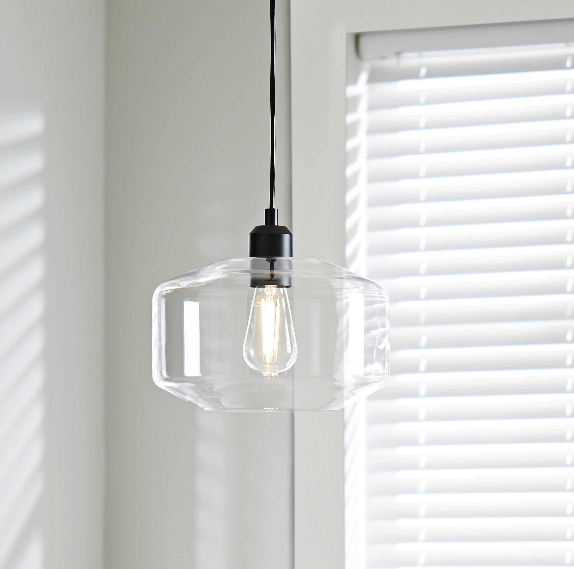 TRANSITIONAL DESIGN: with a classic round canopy and a contemporary shaped clear glass shade, the Better Homes & Gardens 1-Light Pendant is a shining example of transitional design that cleverly enhances ultimately any decor CLEAR GLASS SHADE FOR MULTIPLE LOOKS: the clear glass shade is perfect for changing the look of your pendant – change the bulb, change the look! Try a vintage Edison bulb for an effortless timeless look or use a designer bulb for a completely different feel DIMMABLE: fully dimmable with a compatible dimmer switch to create the perfect atmosphere (dimmer switch sold separately)