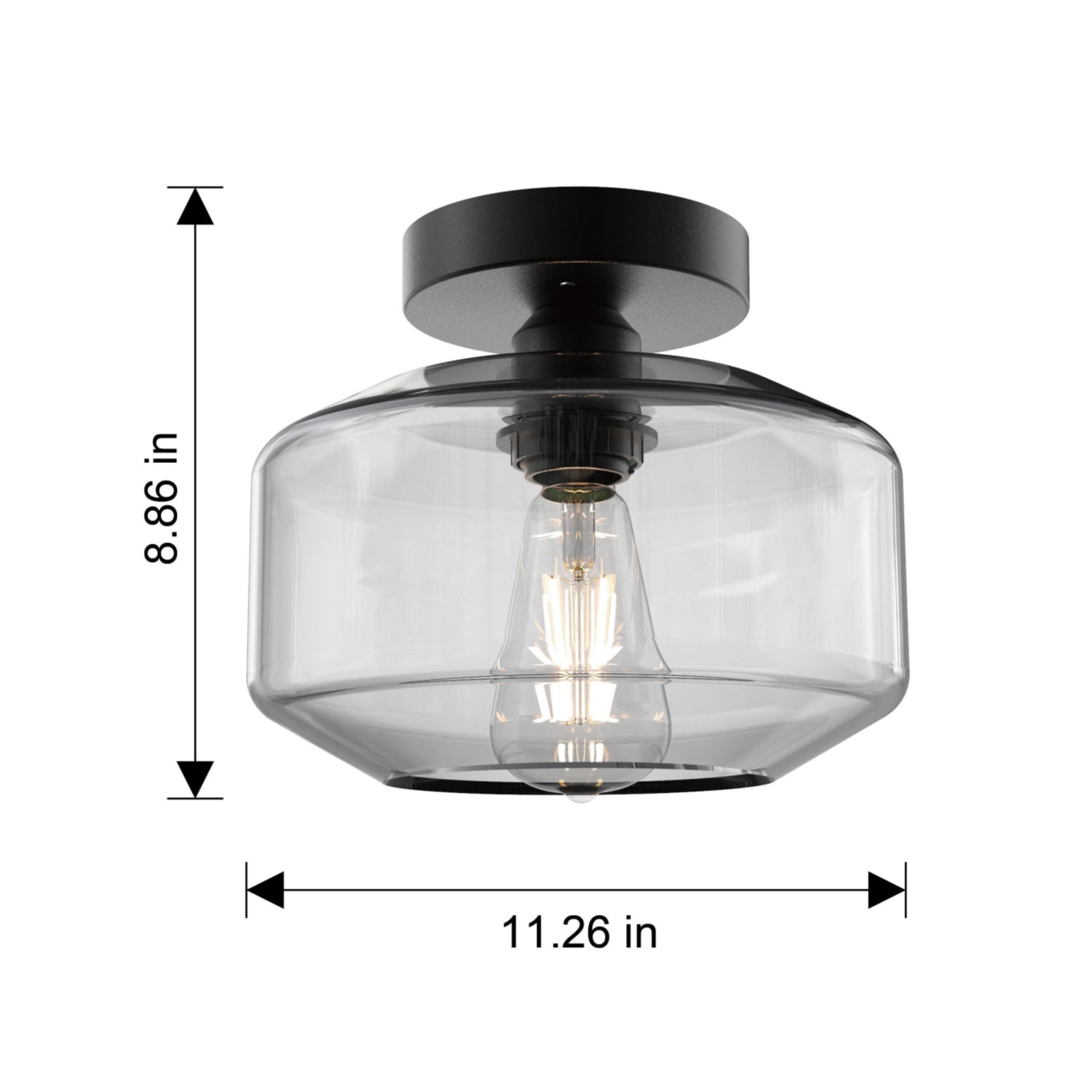 Better Homes & Gardens 12″ Architectural Semi Flush Ceiling Light, Black Finish Clear Glass Shade