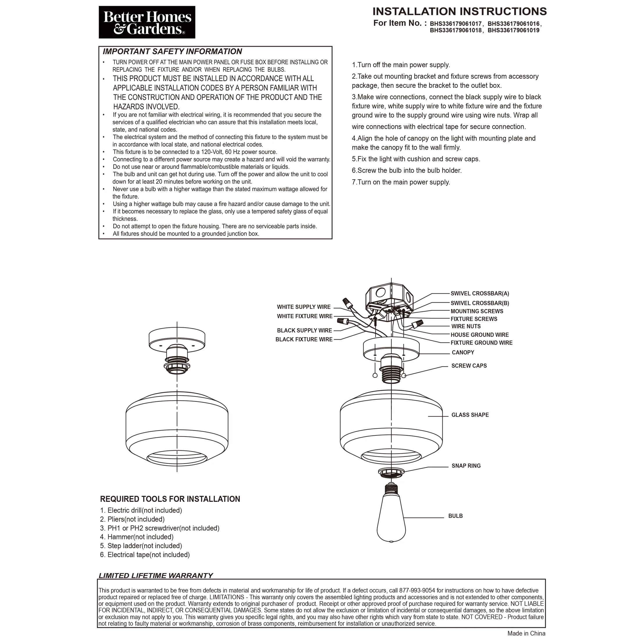 The Better Homes & Gardens indoor fixture is a well-designed modern ceiling light for your home decoration. This metal light fixture features a matte black finish. The design of the glass shade makes the light shinier. It is most suitable to be installed in rooms with low ceilings and in places like the hallway, living room, and kitchen. With soft edges and inviting curves, this fixture is an inspired choice. This fixture is equipped with a dimmable 75W equivalence ST19 filament bulb. This decorative bulb is rated to last 13 years based on 3 hours per day use. This light bulb uses only 8.5 watts of energy to produce light, which is equal to light from a 75W incandescent. That is a 90% savings over traditional lighting and that means savings on your energy bill every month and with the energy certification to prove its credibility.(BHS336179061017)