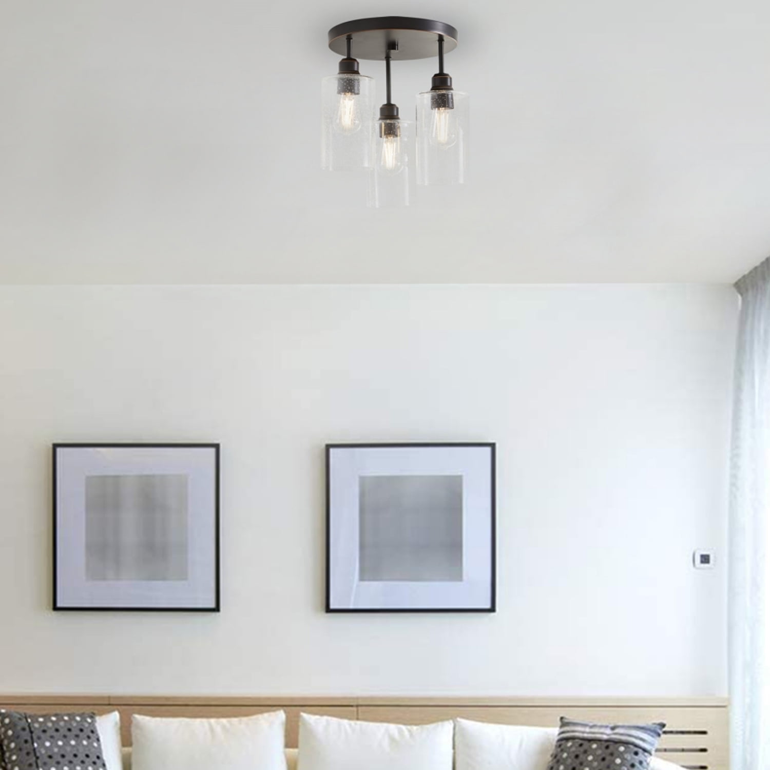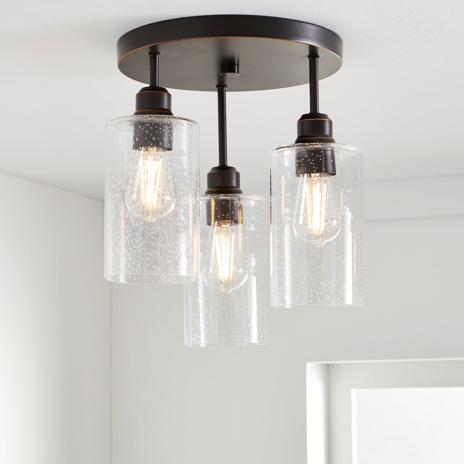 Better Homes & Gardens 13″ Farmhouse 3-Light Bronze Flush Mount Ceiling Light, Seeded Glass Shades