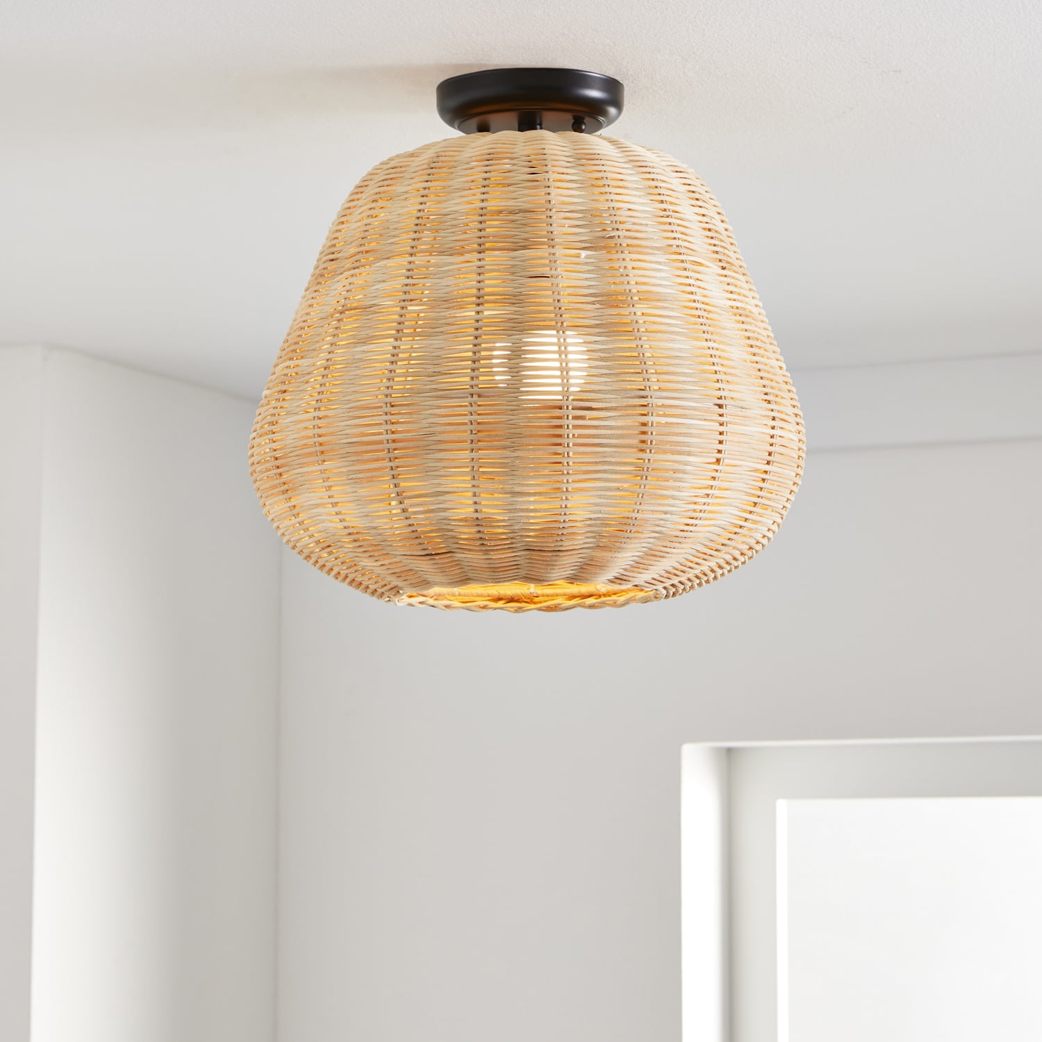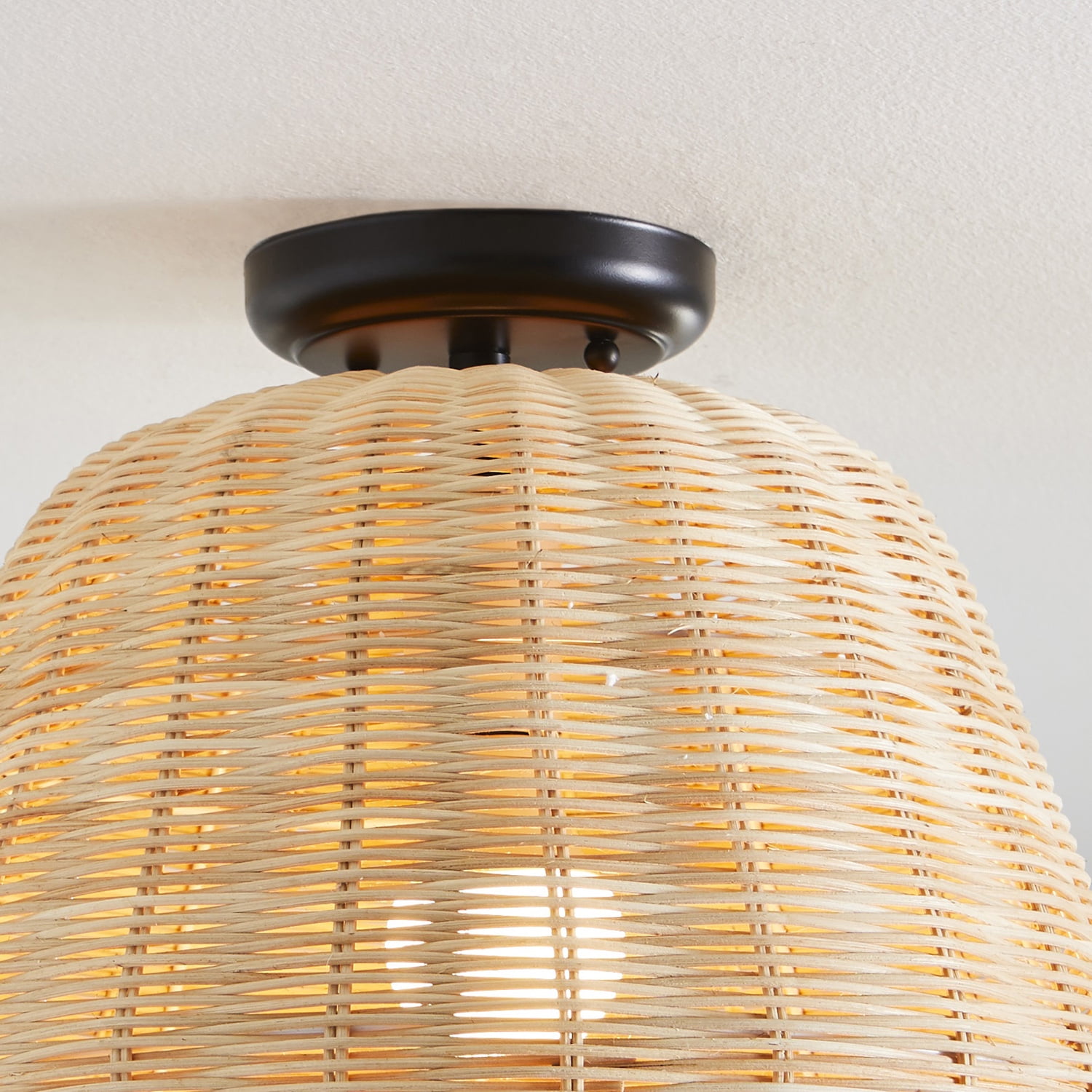 Better Homes & Gardens 13″ Nature Woven Semi Flush Mounted Ceiling Light, Dimmable A19 Soft White