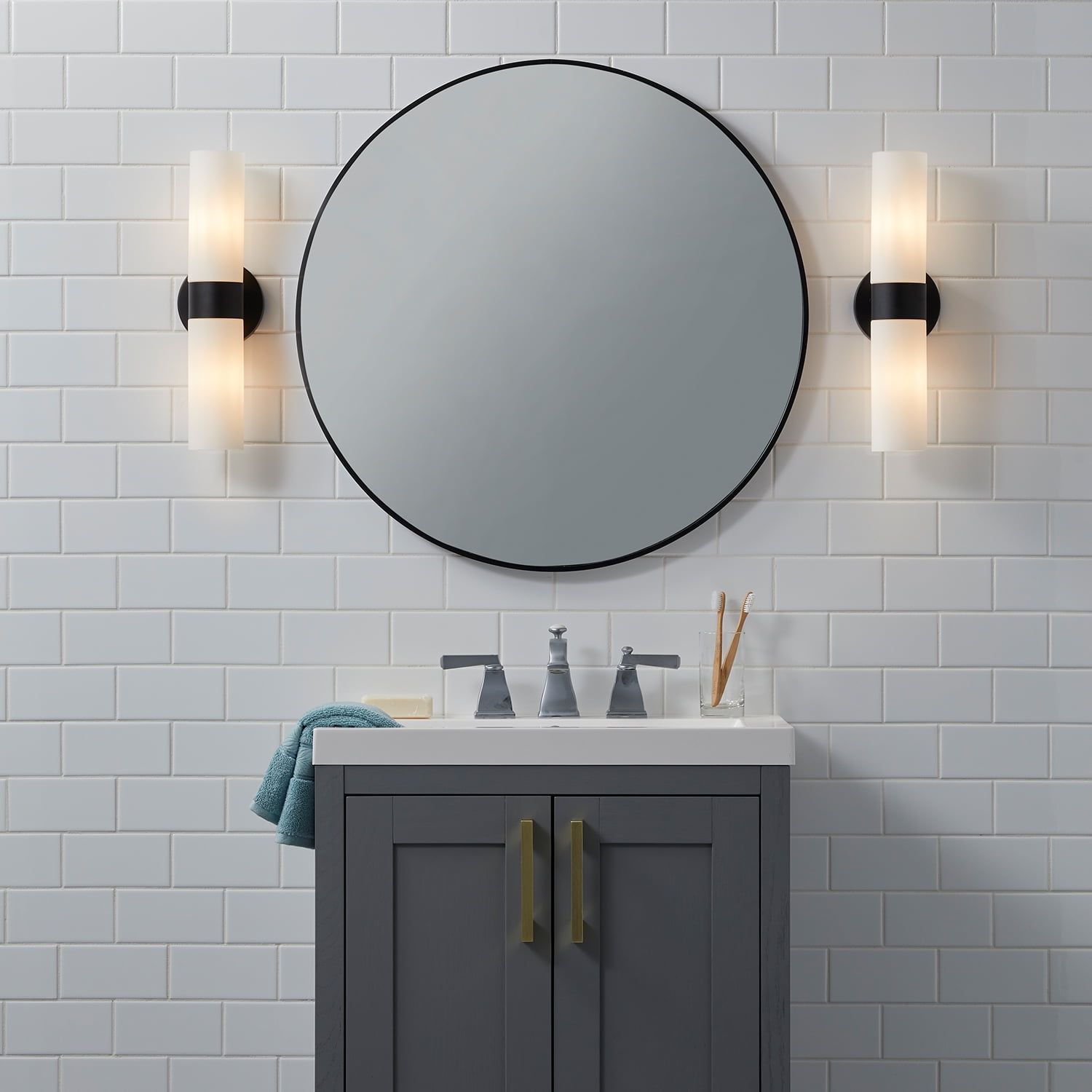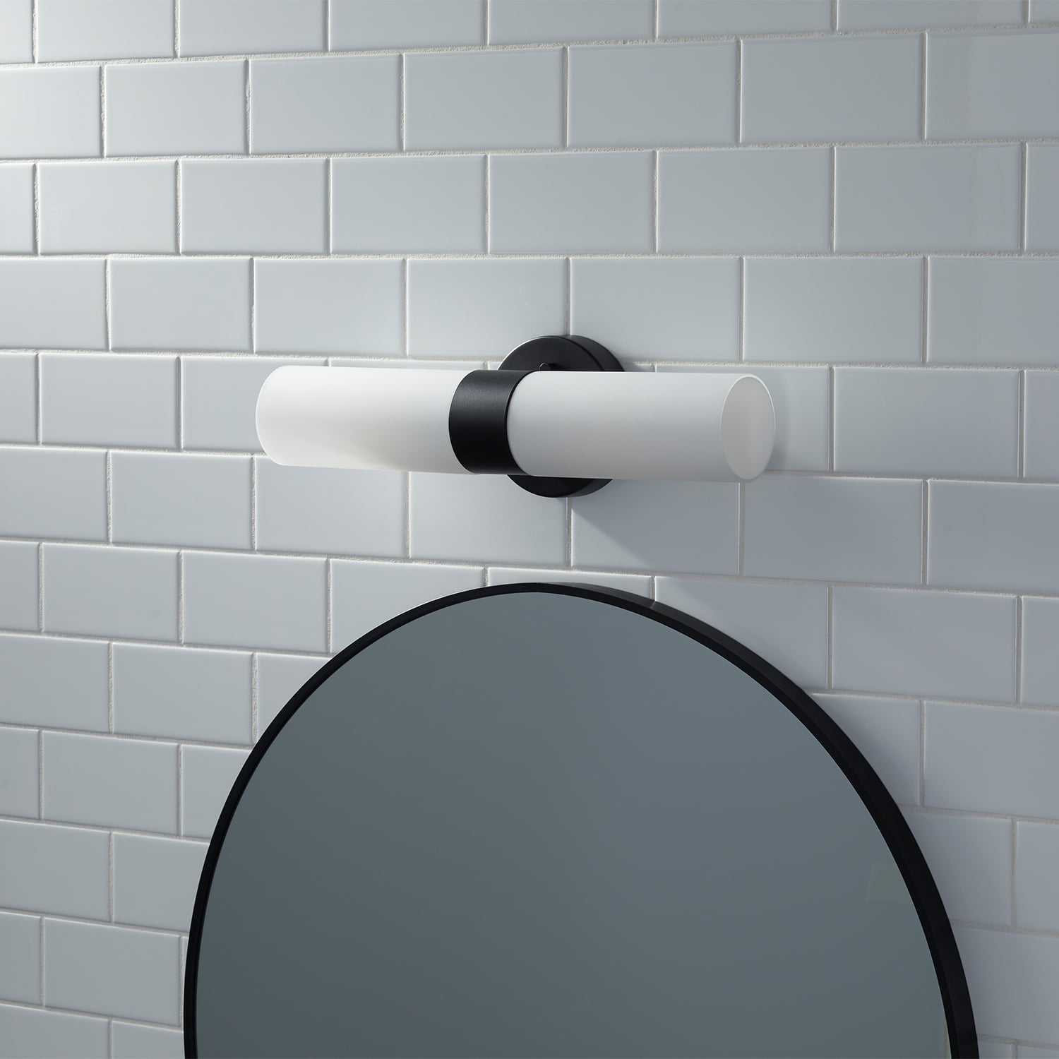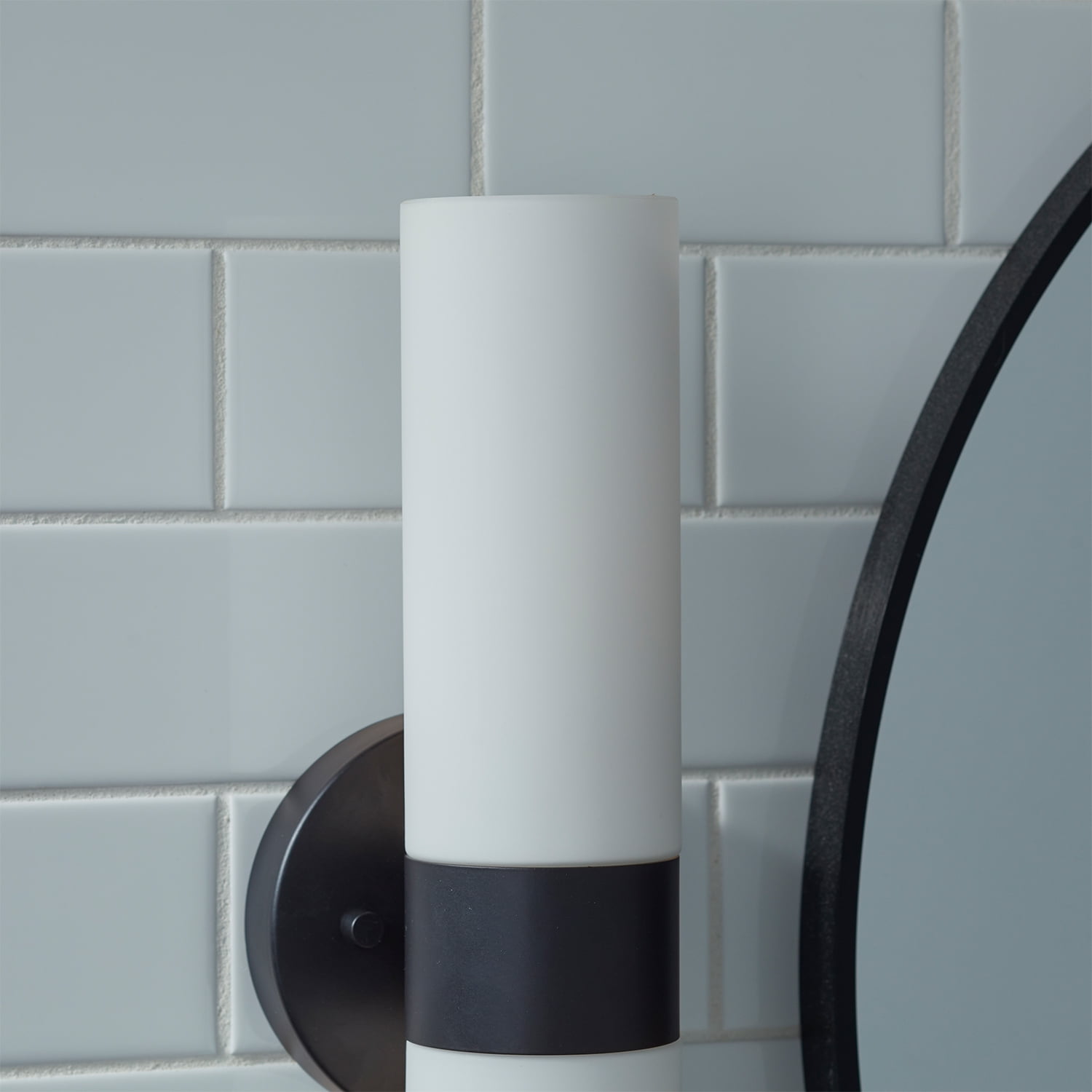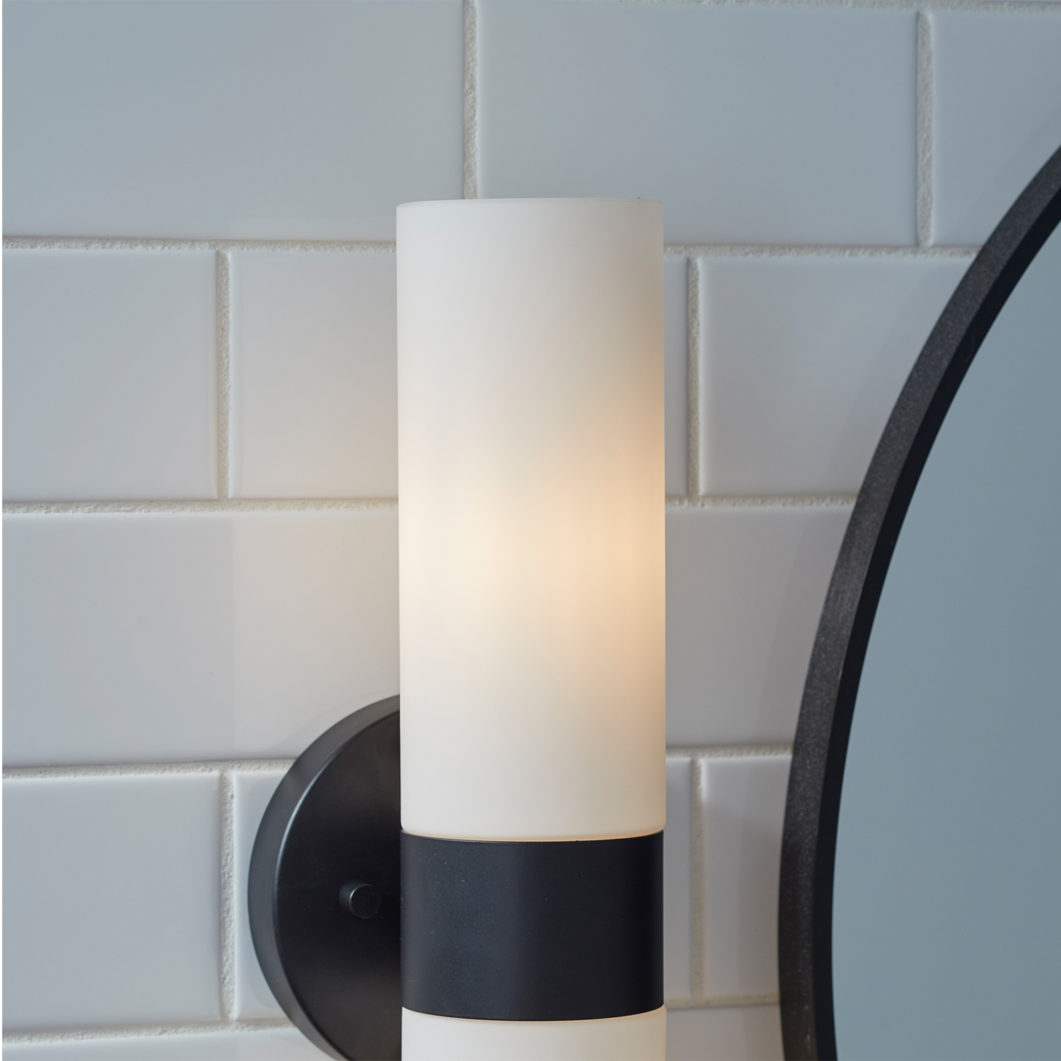 Blending with all decor styles the Better Homes & Gardens Irving Park 2-Light Vanity Light can be placed anywhere in your home. The matte black finish with white opal glass brings a contemporary glam feel to any space. Timeless and classic, this light can be places anywhere in your home from a powder room, to a full bathroom, to a bedroom to a kitchen over the sink. With the ability to be mounted either vertically or horizontally, you can customize the position for your specific look and lighting desires.