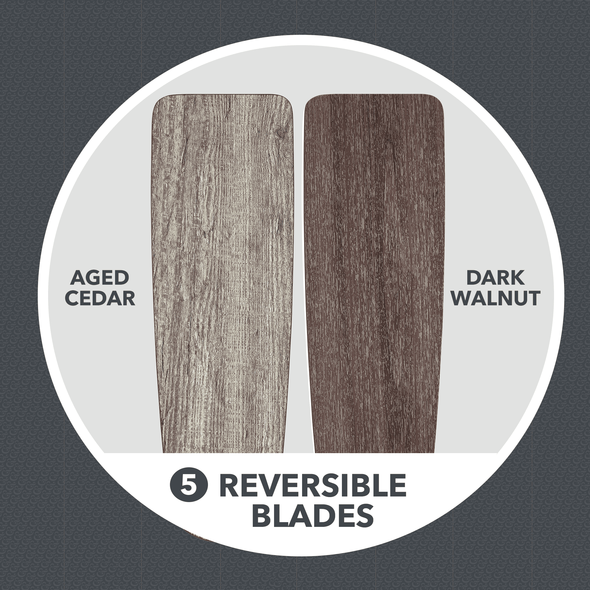 Outdoor, Damp Rated-Great for Covered Porches 5 Reversible Blades- Choice of Aged Teak and classic Dark Walnut Classic, Traditional Style Clear Globe Light Kit- 3 E26, B11 filament LED bulbs included 3 Pull-Chain Adjustable Speed Settings Reversible for Energy Savings Throughout Winter and Summer Months High Quality and Quiet Performance