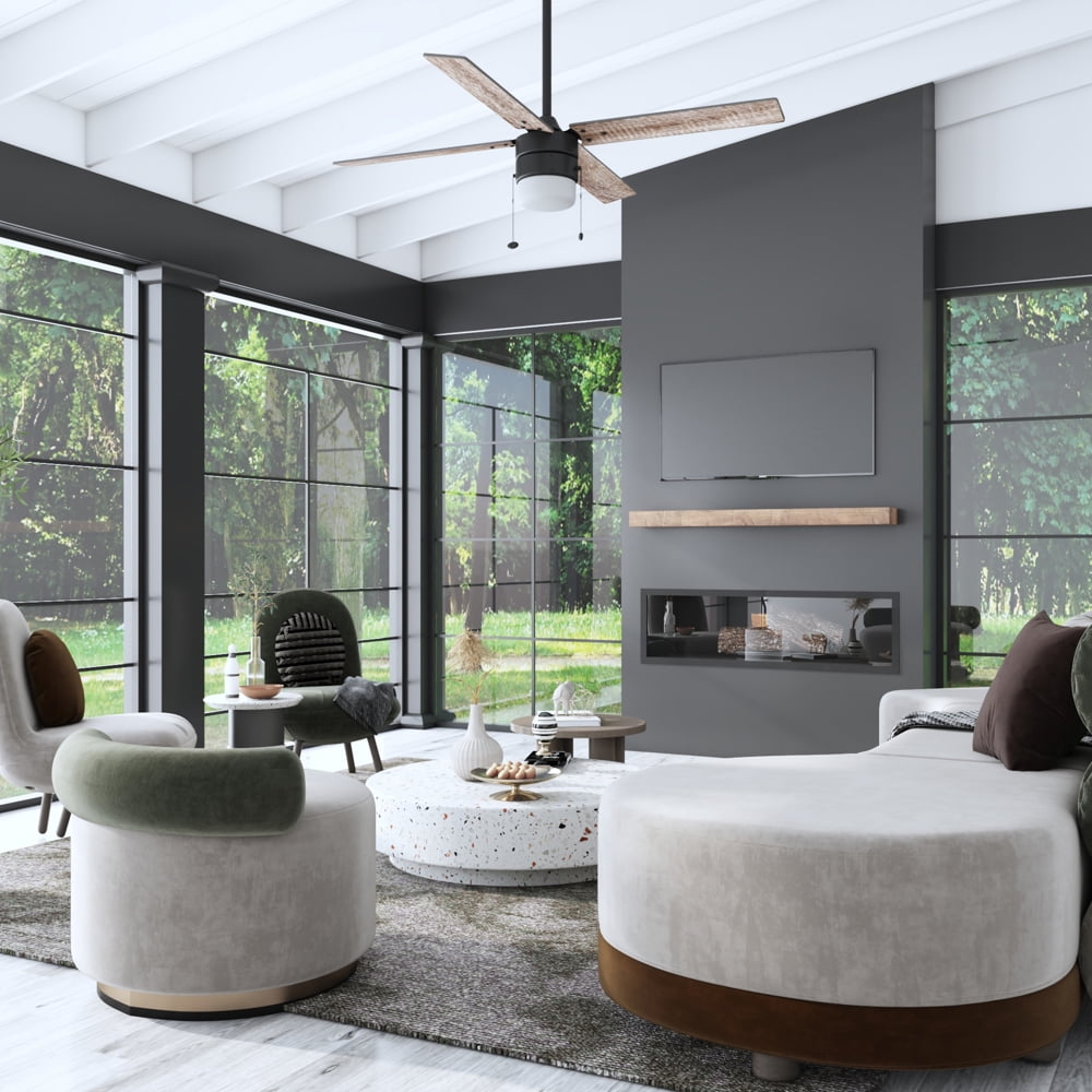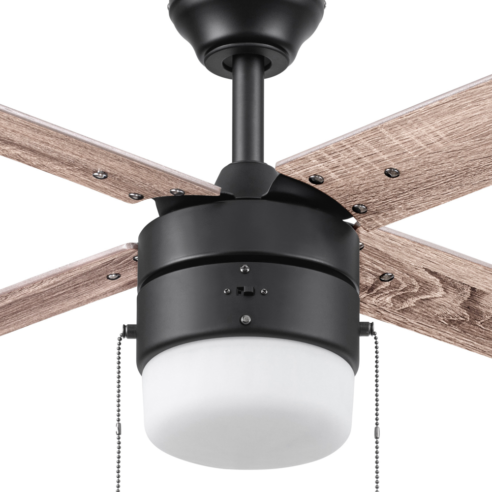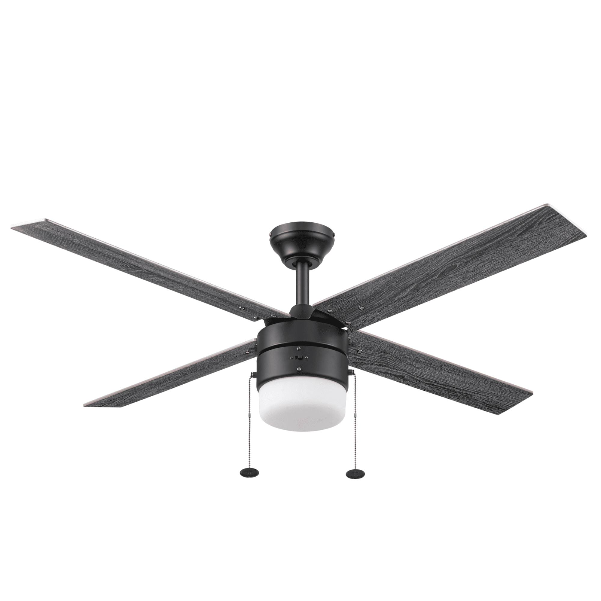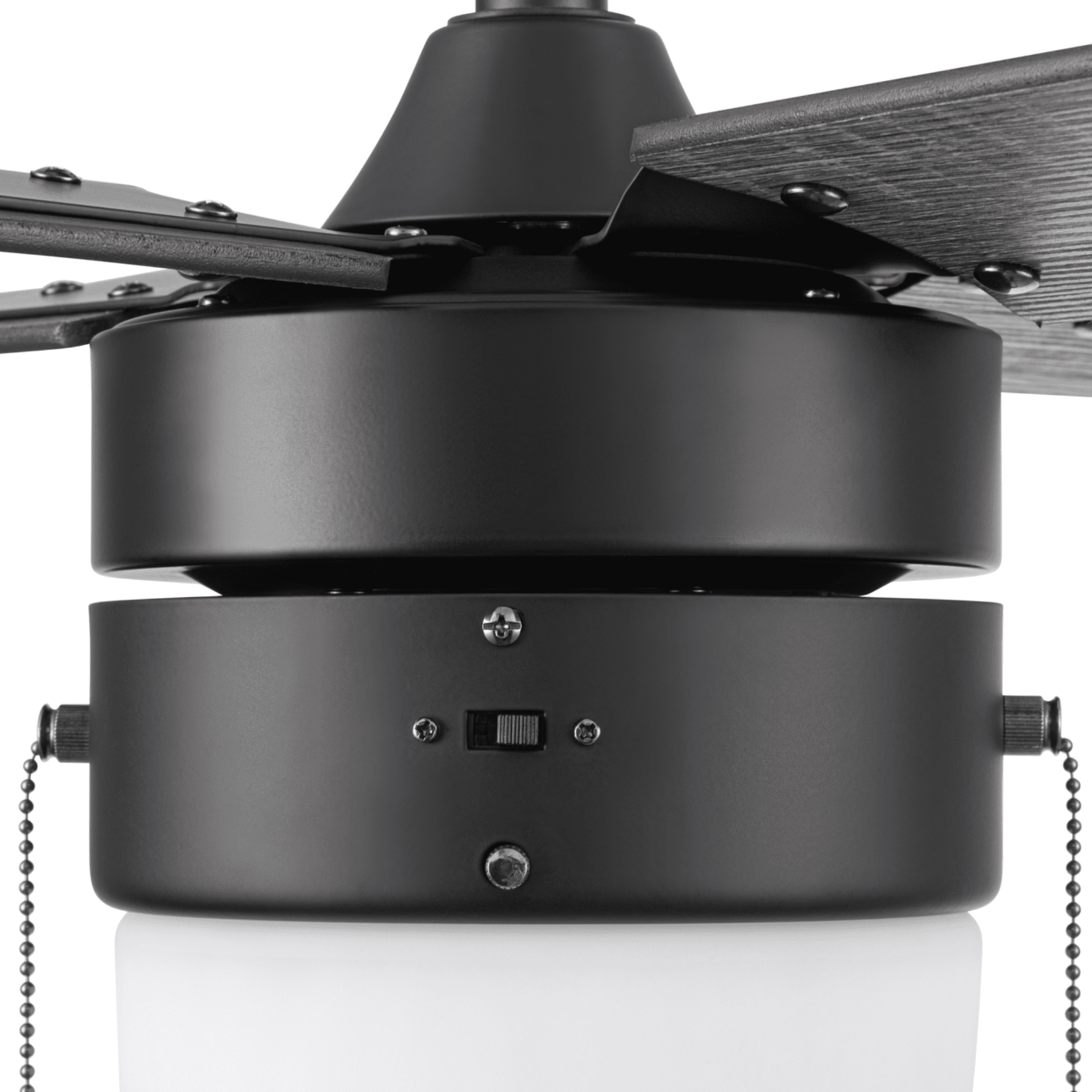 Keep Cool With The Correct Ceiling Fan Size: This 52 inch indoor ceiling fan is ideal for large areas up to 400 sq. ft. such as bedrooms and living rooms. Two Mounting Options: Standard option includes a 6 inch downrod; angled mount option allows for hanging on vaulted ceilings with a longer downrod (sold separately) Reversible Fan For All Seasons: Improves air circulation in winter and summer; During summer, this ceiling fan optimizes airflow to enhance comfort; During winter, change the direction to evenly distribute warm air on low speed Indoor Ceiling Fan: Perfect for living rooms, bedrooms, and offices Pull Chain Control: Easy-to-use pull chains are included for quick adjustments to the light and speed settings Ceiling Fan With Light: Includes a frosted integrated plastic globe that houses an E26, A19 LED bulb Reversible Blades: Choose between Rough Pine and Coal to best fit your space Crafted With High-Quality Material: The high-capacity motor delivers powerful airflow and quiet performance for years to come; This durable and modern ceiling fan is designed for long lasting comfort; ETL listed