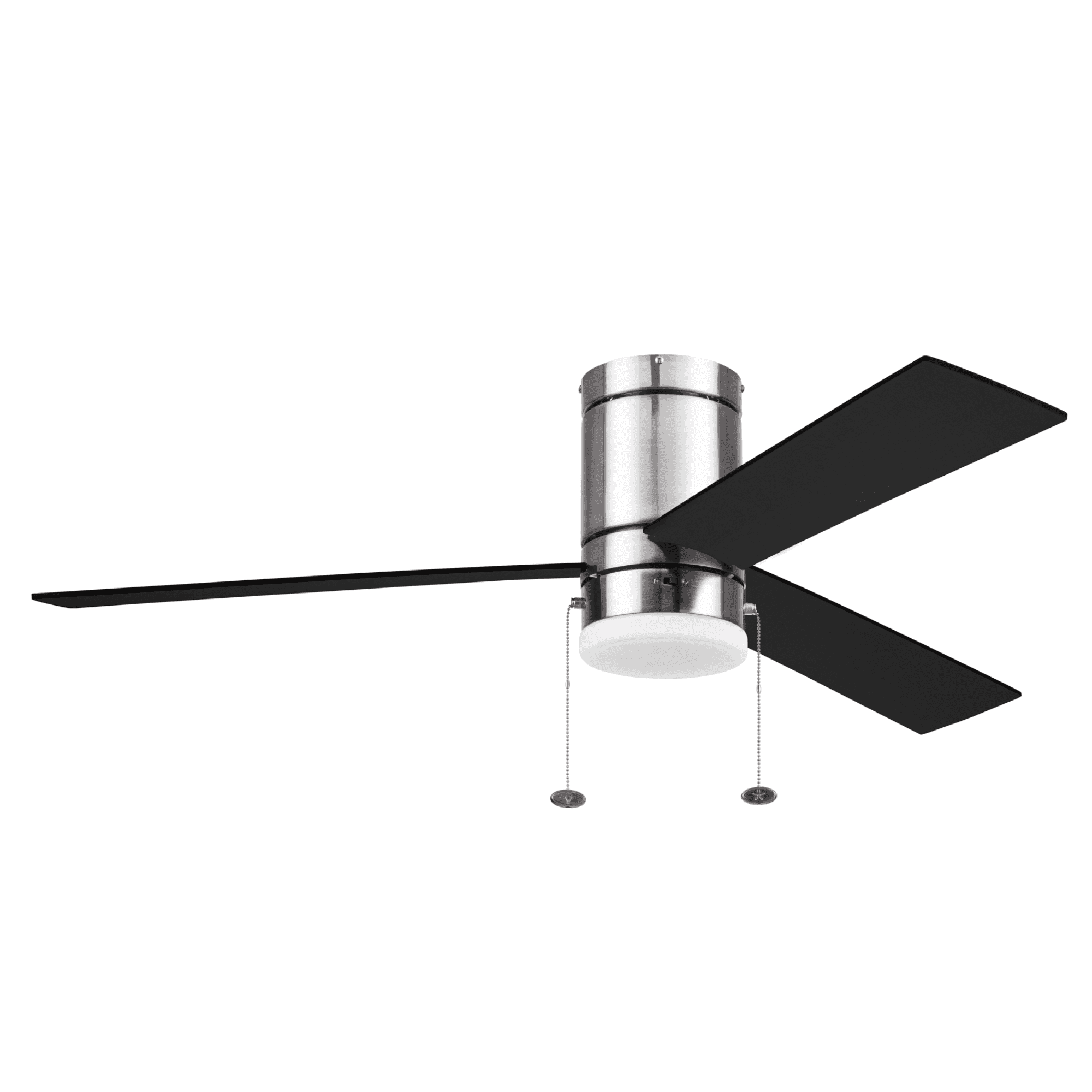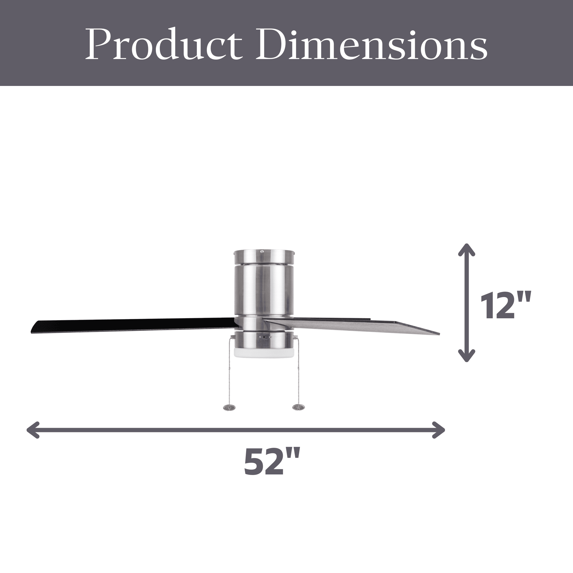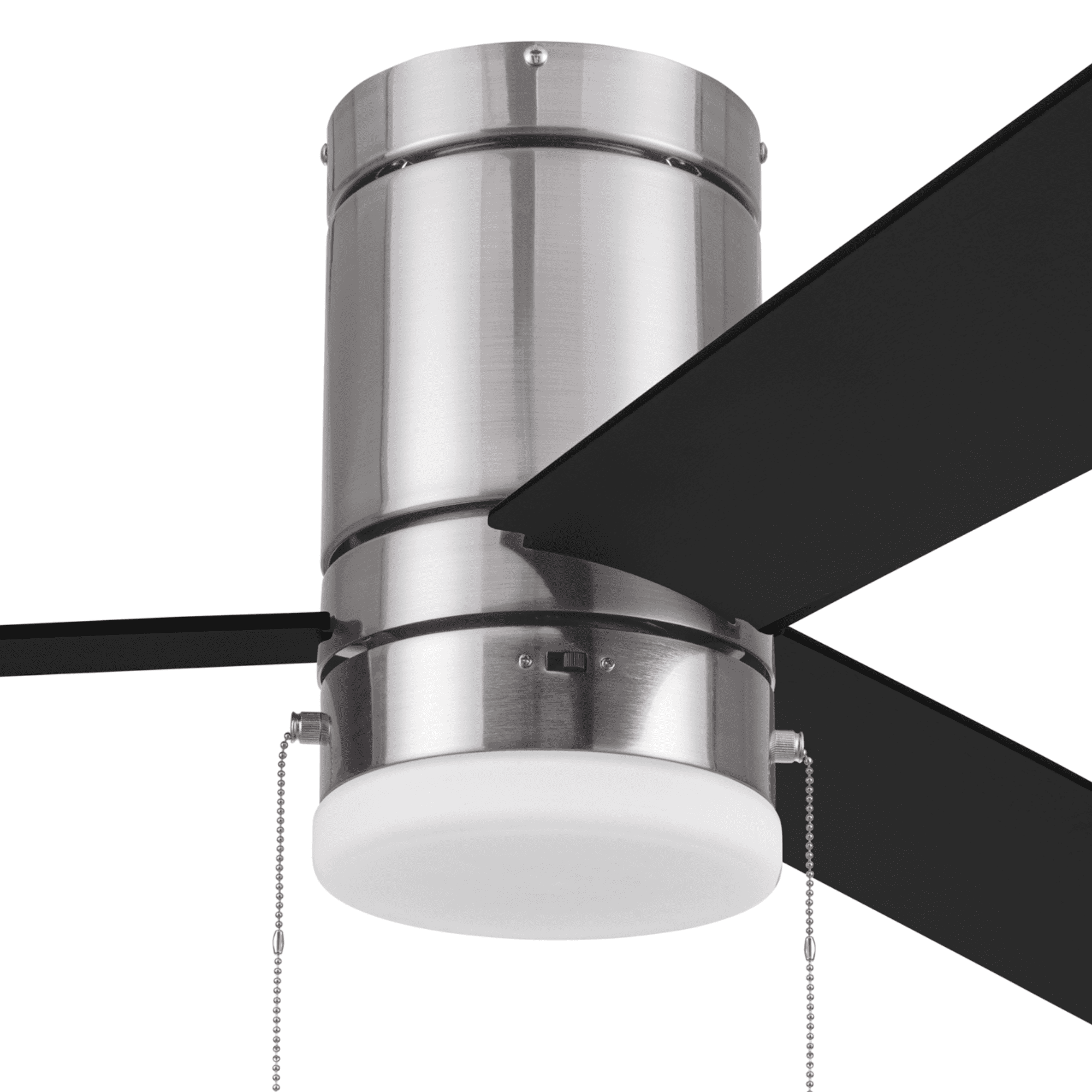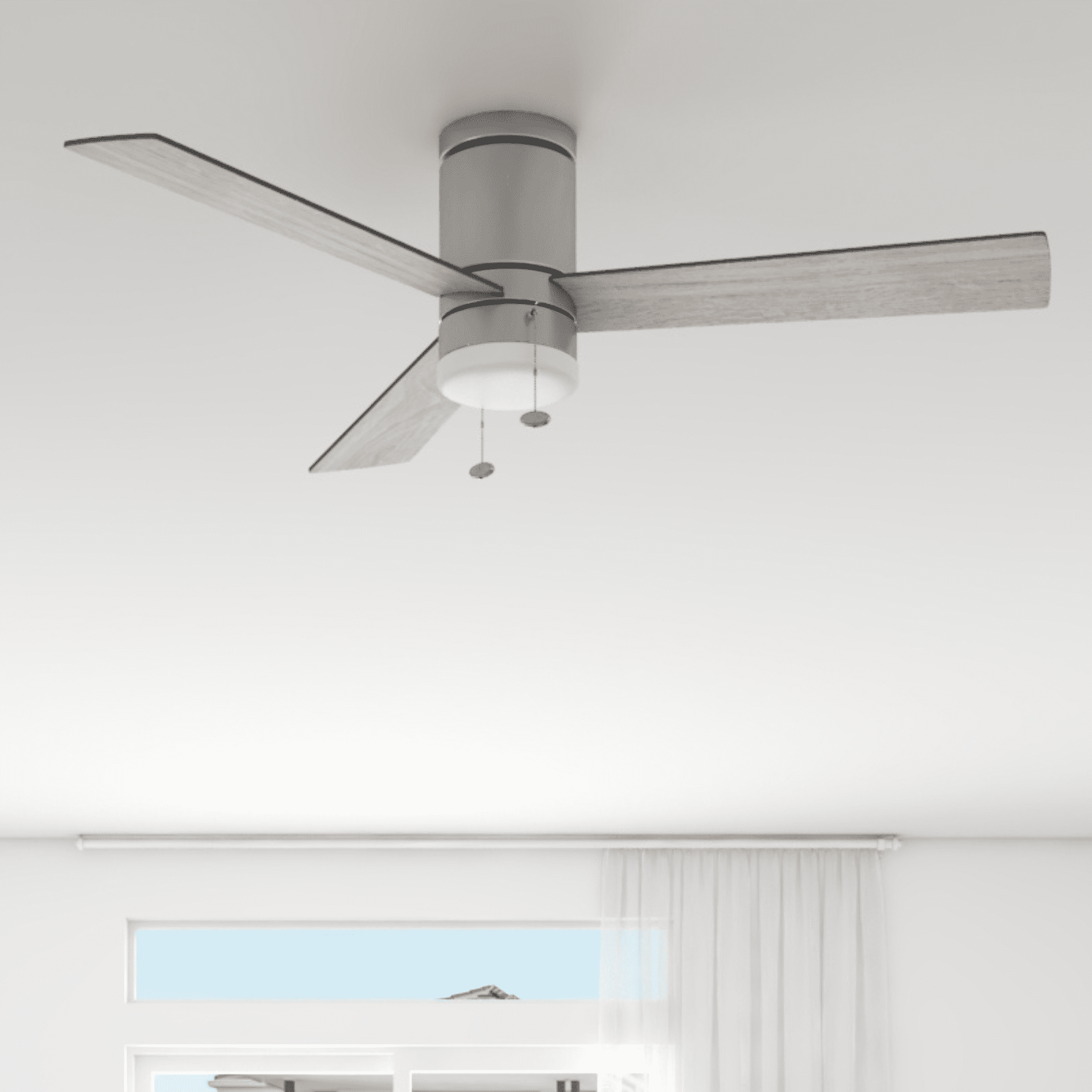 Keep Cool With The Correct Ceiling Fan Size: This 52 inch indoor ceiling fan is ideal for large areas up to 400 sq. ft. such as bedrooms and living rooms. Low Profile Mount: To be mounted flush with the ceiling where more walk-through space is needed Indoor Ceiling Fan: Perfect for living rooms, bedrooms and offices Pull Chain Control: Easy-to-use pull chains are included for quick adjustments to the light and speed settings Ceiling Fan With Light: Includes a frosted integrated glass globe with twist lock. Integrated LED light kit features 5 color temperatures: Cool Daylight (6500K), Daylight (5000K), Cool White(4000K), Warm White (3000K) or Soft White (2700K) Reversible Blades: Choose between Gray Oak and Matte Black finishes to best complement your space Crafted With High-Quality Material: The high-capacity motor delivers powerful airflow and quiet performance for years to come; This durable and modern ceiling fan is designed for long lasting comfort; ETL listed