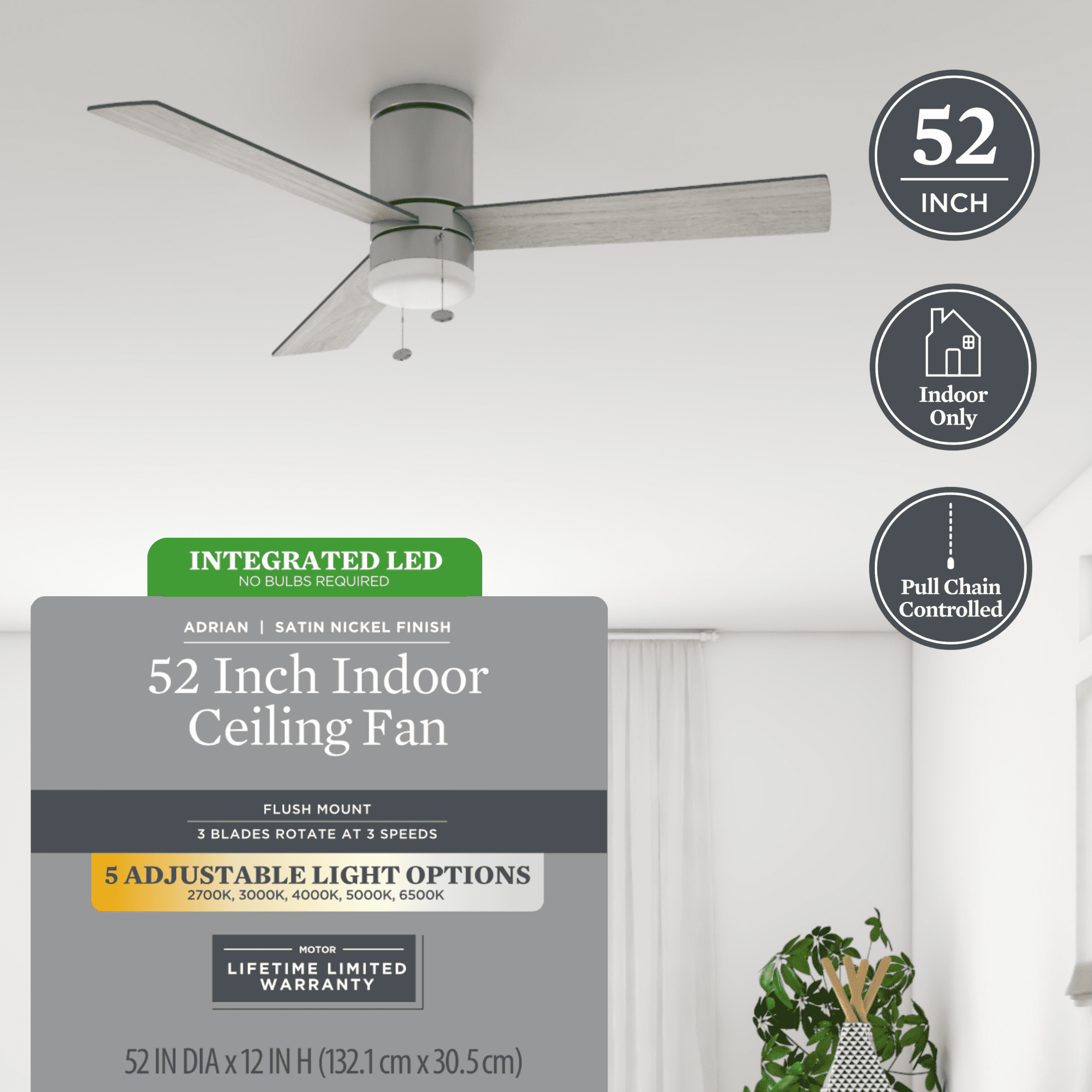 Better Homes & Gardens 52″ Modern Nickel Indoor Flushmount Ceiling Fan with Color Changing Light, Pull Chain Control & Reverse Airflow