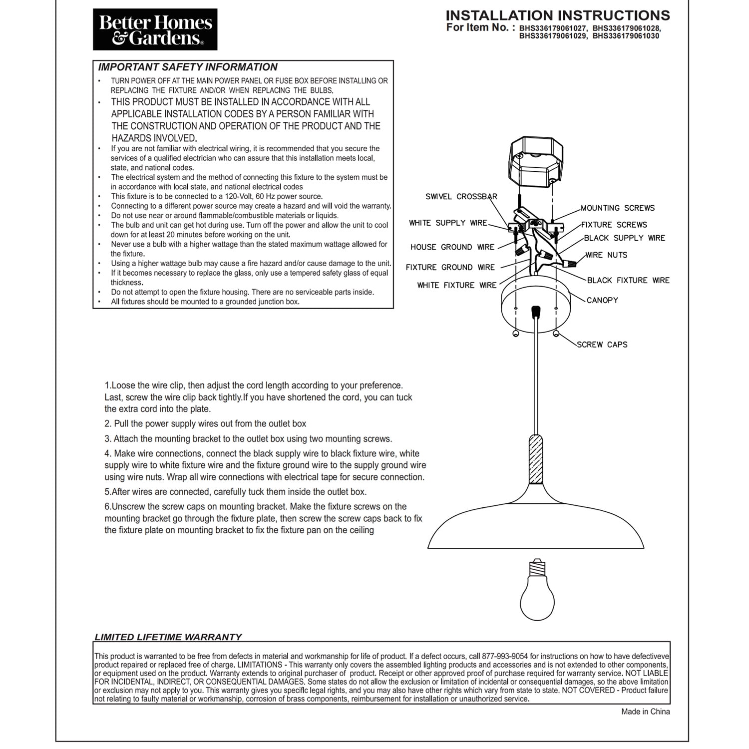 The Better Homes & Gardens fixture is well-design for your home decoration. This all-metal light fixture features a Matte Black Finish. The plug-in is hardwired and mount Type is pendant light .It’s hardwired and ceiling mount, 1 light included. Heartwarming and Special, Better Homes & Gardens pendant create an inviting atmosphere for your room. The special design of the metal part makes it unique and attractive. The adjustable cord length allows you to decide height of the light according to your preference. This light has a wide range of application, it will be suitable in dinning room, bar, kitchen and more. This fixture Includes a dimmable 60W equivalence A19 LED bulb. This LED bulb is rated to last 13 years based on 3 hours per day use. This light bulb uses only 9 Watt of energy to produce light, which is equal to light from a 75W incandescent. that is a 90% savings over traditional lighting – and that means savings on your energy bill every month and with the energy certification to prove its credibility.