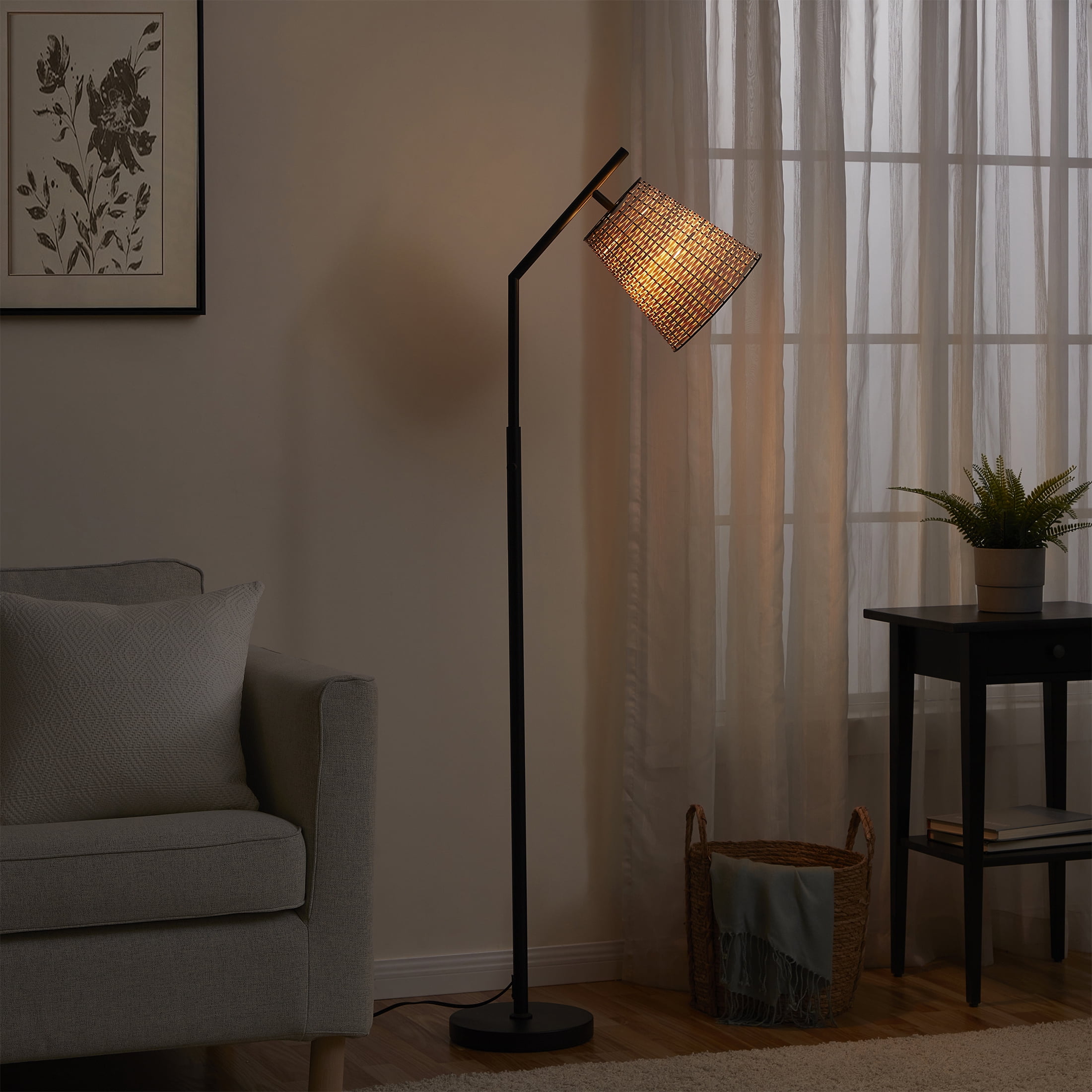 Better Homes & Gardens 60” Boho Black Angled Floor Lamp with Natural Shade
