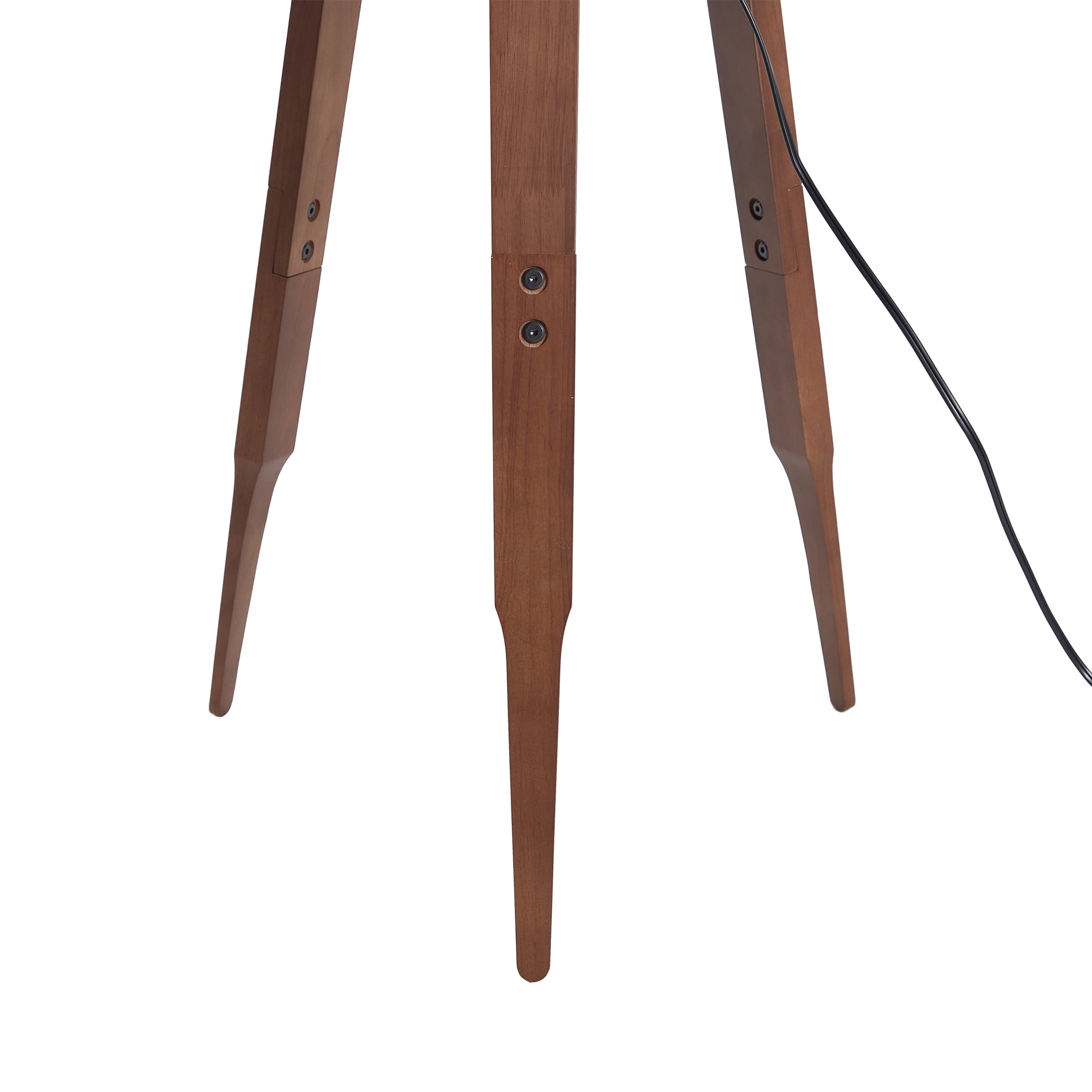 Standing wooden floor lamp with rattan shade Features three tapered legs and textured rattan lampshade Combines midcentury modern and boho styles Sturdy wooden tripod base 60-inch overall lamp height, 15-inch shade diameter Ideal lighting accent for living rooms, bedrooms, offices, dorm rooms, and more Requires E26 light bulb (not included)