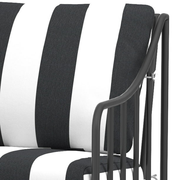 Better Homes & Gardens Aubrey 3-Piece Outdoor Steel Stationary Chat Set, Stripe Color Cushion