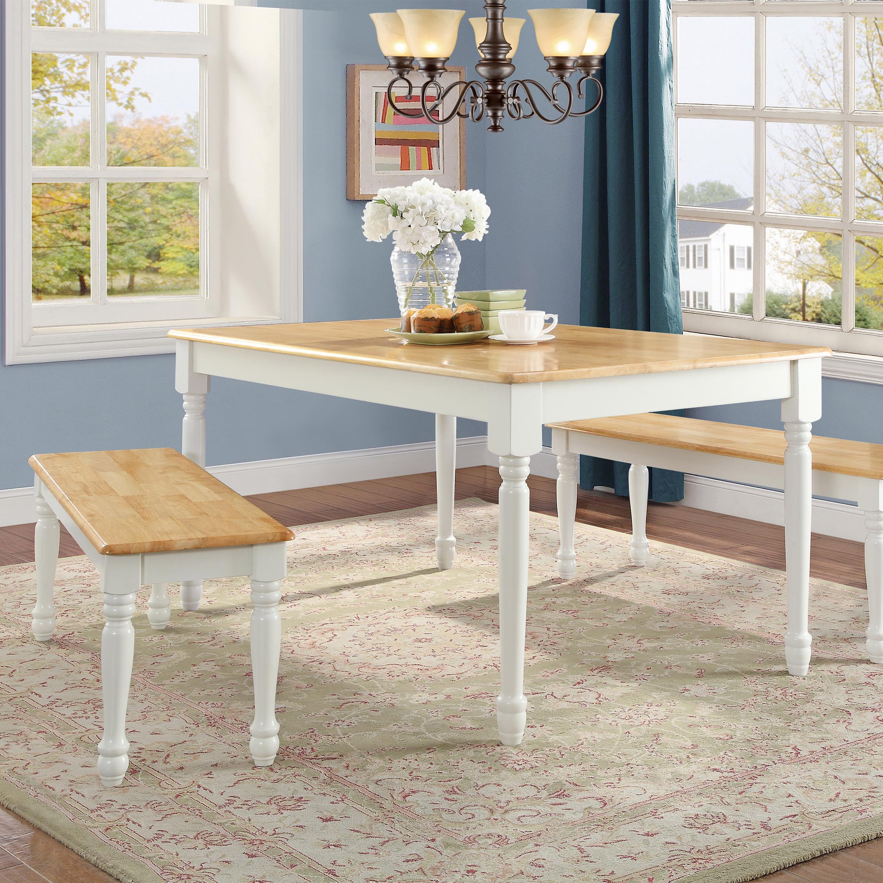 Better Homes & Gardens Autumn Lane Farmhouse Solid Wood Dining Bench, White and Natural Finish