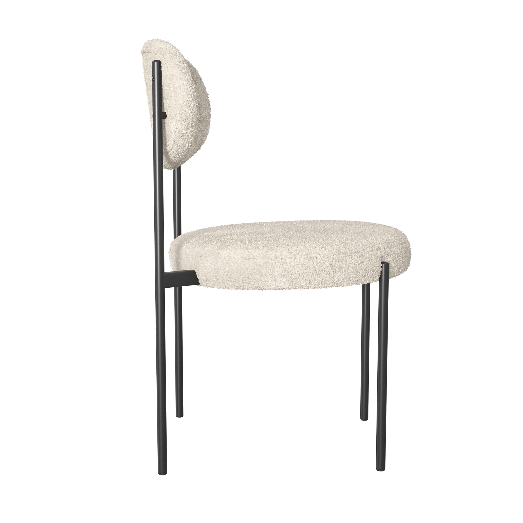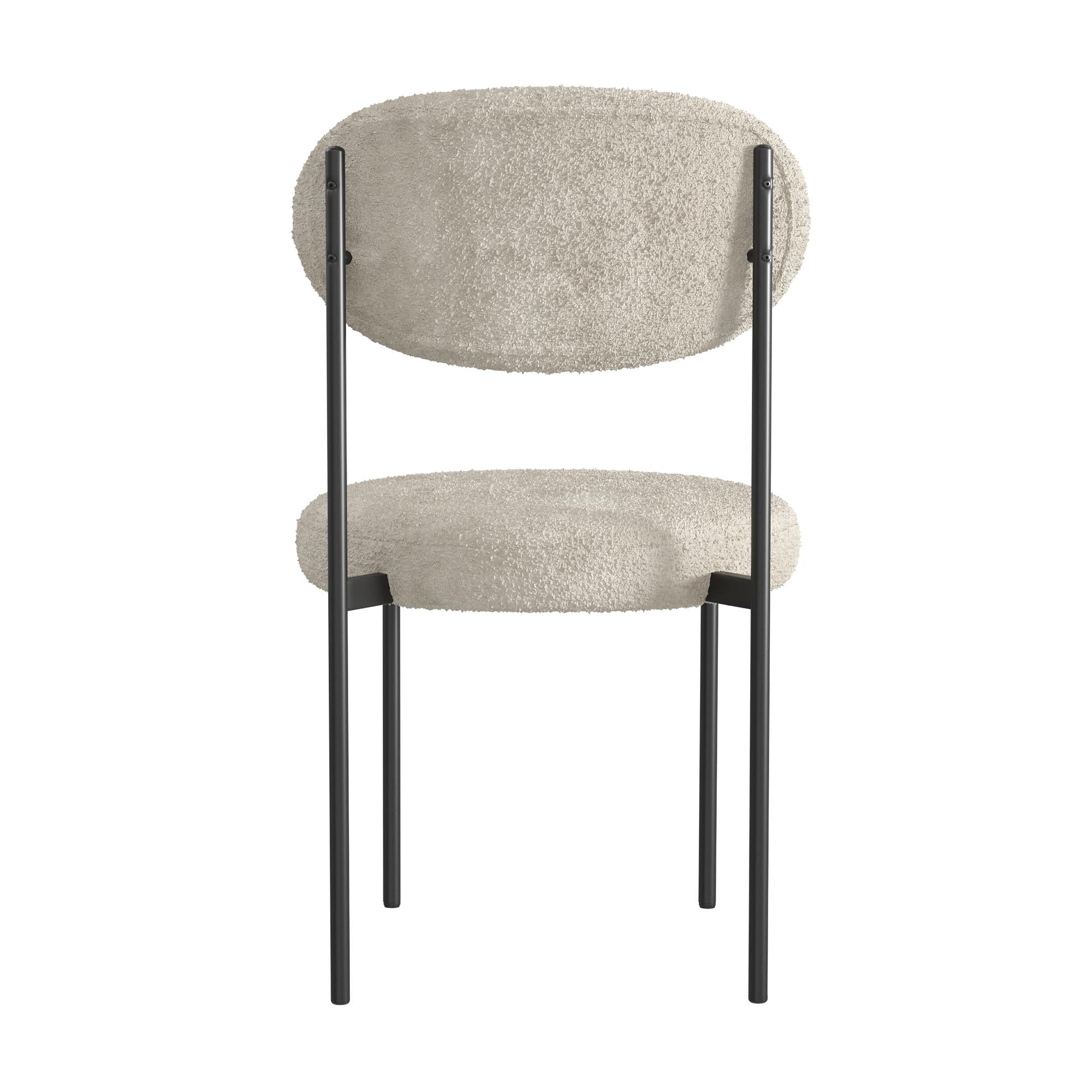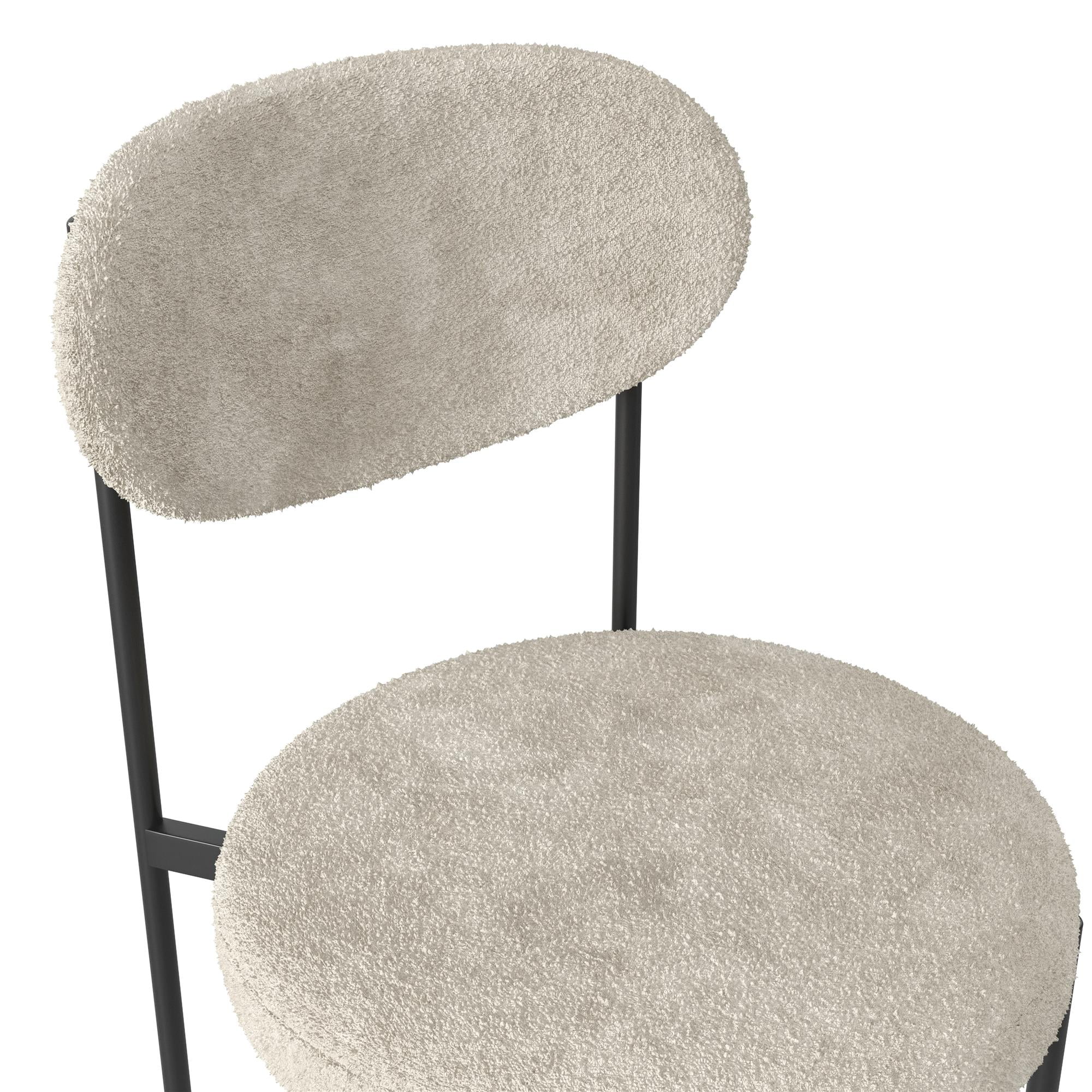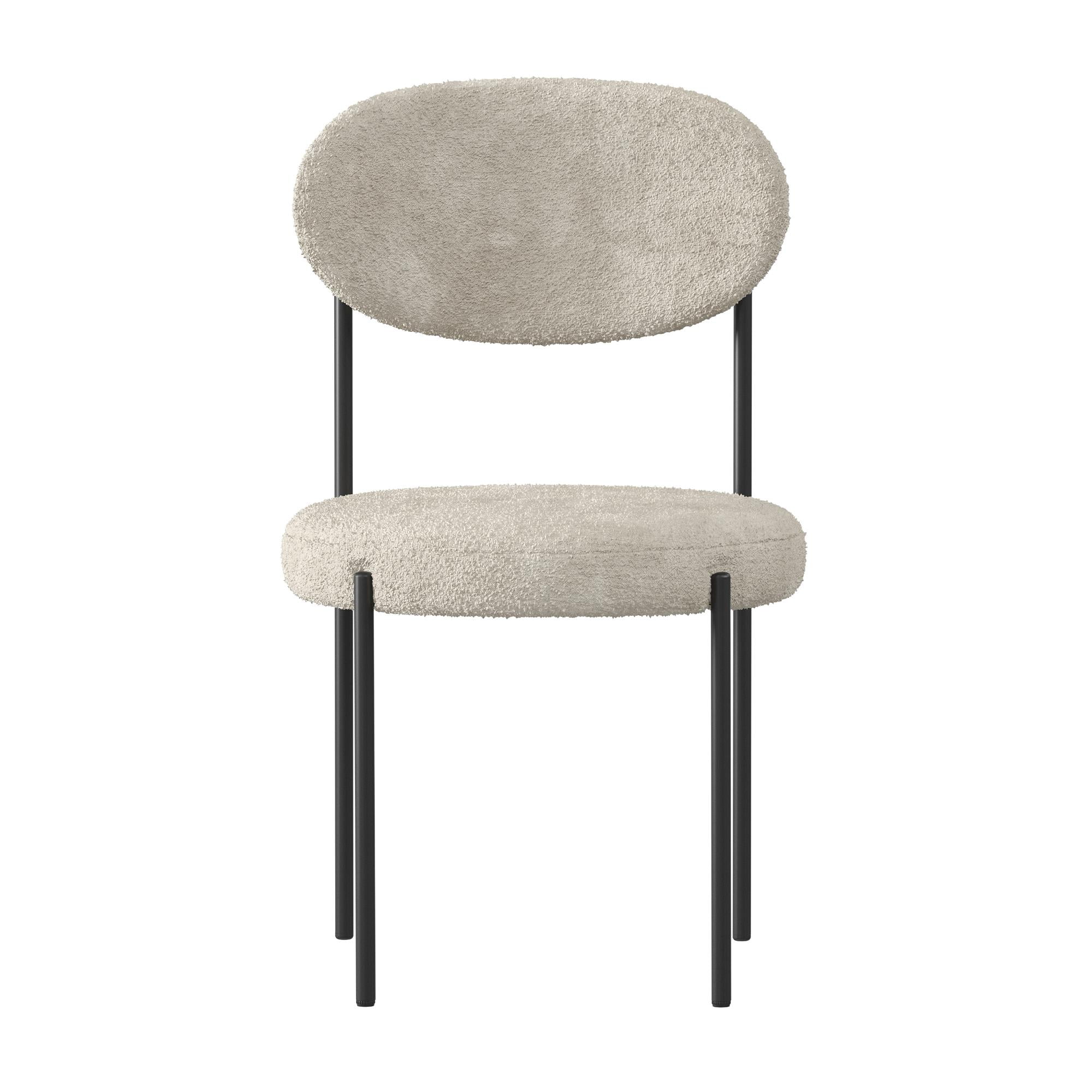 SHERPA SOFT: Our luxe boucle fabric upholstered and cushioned set of 2 dining chairs sport ergonomic design featuring a high curved back for ideal support and wide 3.5-inch-thick seating to sink into for dining room, kitchen, and living room comfort MIDCENTURY MODE: The matte black steel metal frame and high-density foam padded round seat backed by a strong wood base not only draw your eye to impeccable modern style but to the durable build of the dining chairs which also double as accent chairs ADJUSTABLE GLIDERS: Back leg anti-skid plastic caps help your floors from getting scuffed or scratched when moving the chair while adjustable height gliders on the front legs keep your chair level on surfaces to prevent wobbliness and offer stability SPEEDY ASSEMBLY: Set aside only 15 minutes to put this item together. All parts, tools, and easy-to-follow instructions are included in box. Wipe polyester-based material clean with a damp cloth, but avoid excessive rubbing to maintain boucle texture SLEEK SIZE: Dining chair profile: 19″L x 20.5″W x 32.5″H. Seat dimensions: 18.5″W x 18.5″D x 18″H. Weight limit: 250 lbs. Net weight (each chair): 13 lbs. 1-year limited warranty. Each pair sold separately. Matching stool available (not included)