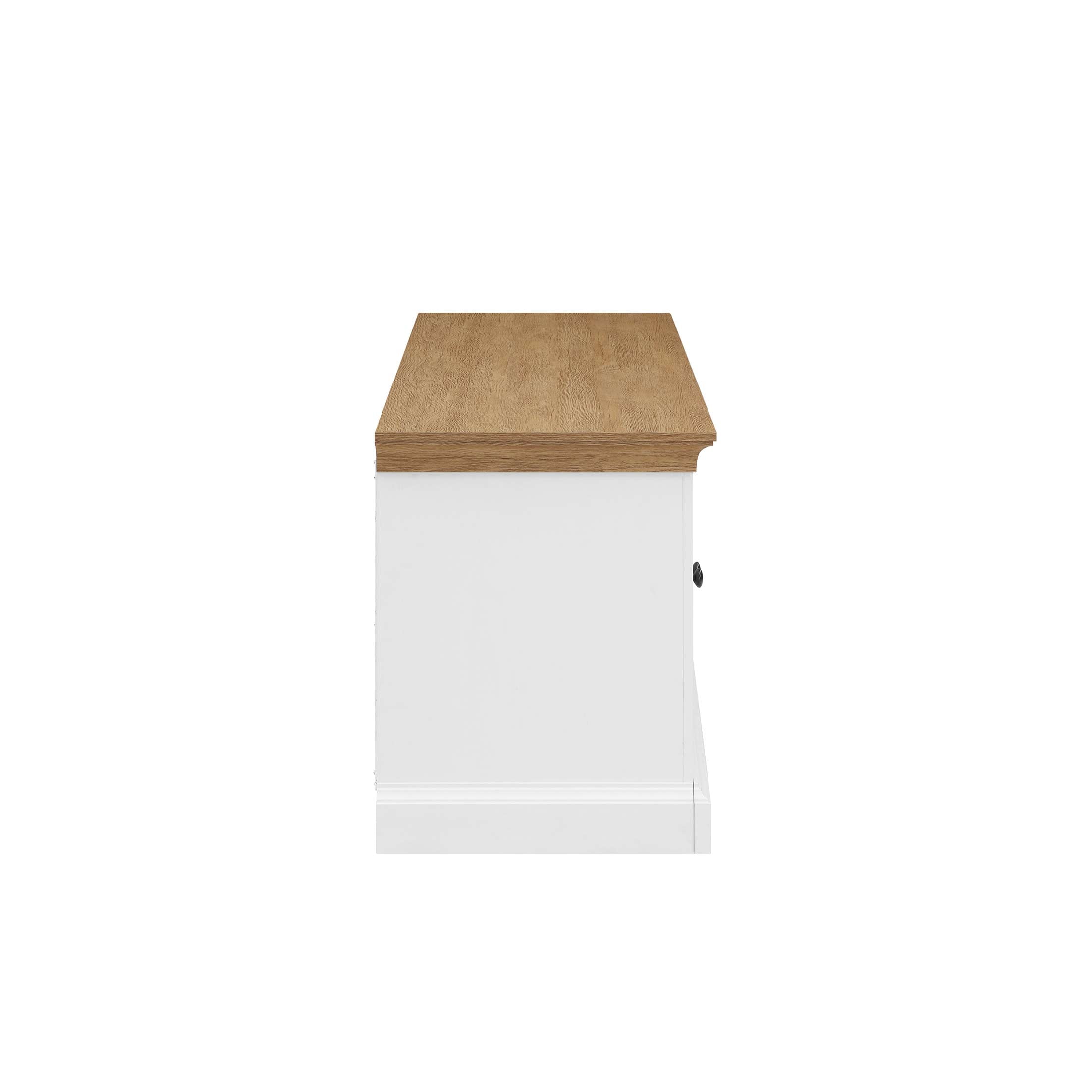 The Canton Low Profile TV Stand is a versatile and stylish addition to any living space. Designed to accommodate TVs up to 70 inches, this TV stand offers a perfect blend of form and function. The two spacious double-door cabinets provide a great space for storing media components, accessories, books and more. The adjustable shelves allow you to customize your storage to fit your needs. The soft-closing euro-style hinges on the cabinet doors ensure a smooth and quiet operation, making it a pleasure to use. The black gunmetal knobs are not only functional but also add a touch of sophistication to the piece. This adaptability ensures that the Canton TV Stand can seamlessly integrate into various areas of your home, whether its as an entertainment console, an accent cabinet or even a buffet cabinet in your dining room. The 2-tone finish, adjustable shelves, soft-closing hinges, and adaptable usage options make it a fantastic choice for enhancing your home’s aesthetic and storage capabilities.